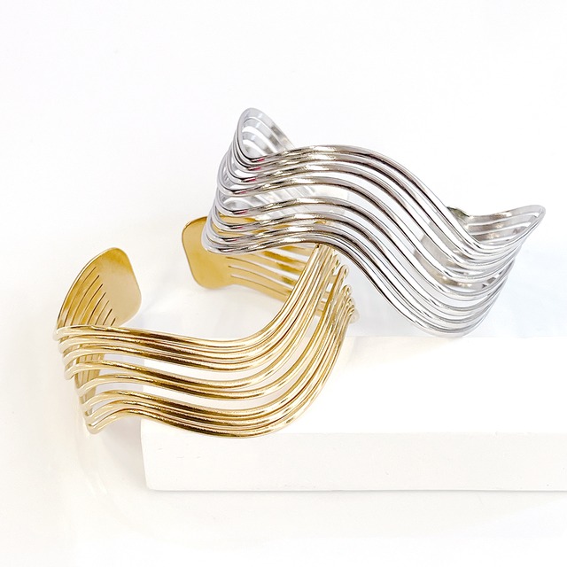選べる2色!ウェーブライン バングル|サージカルステンレス316L 金属アレルギー対応 stb56