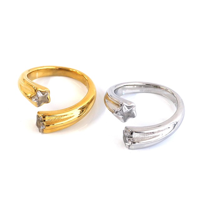 Star Double Stone オープンリング|サージカルステンレス316L ゴールド/シルバー【str189】