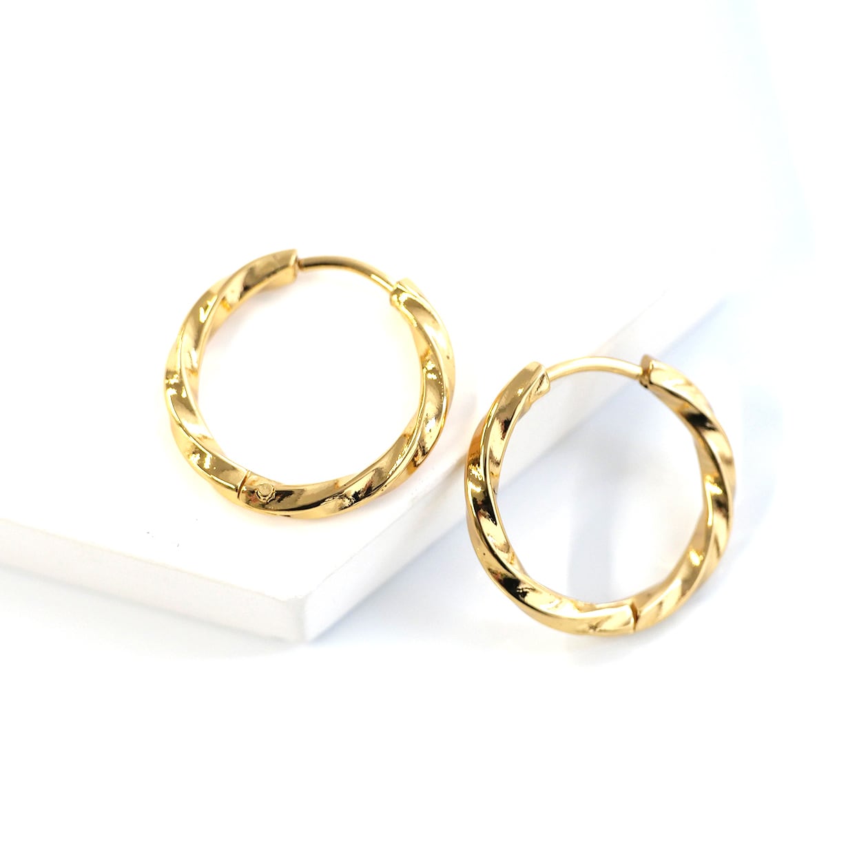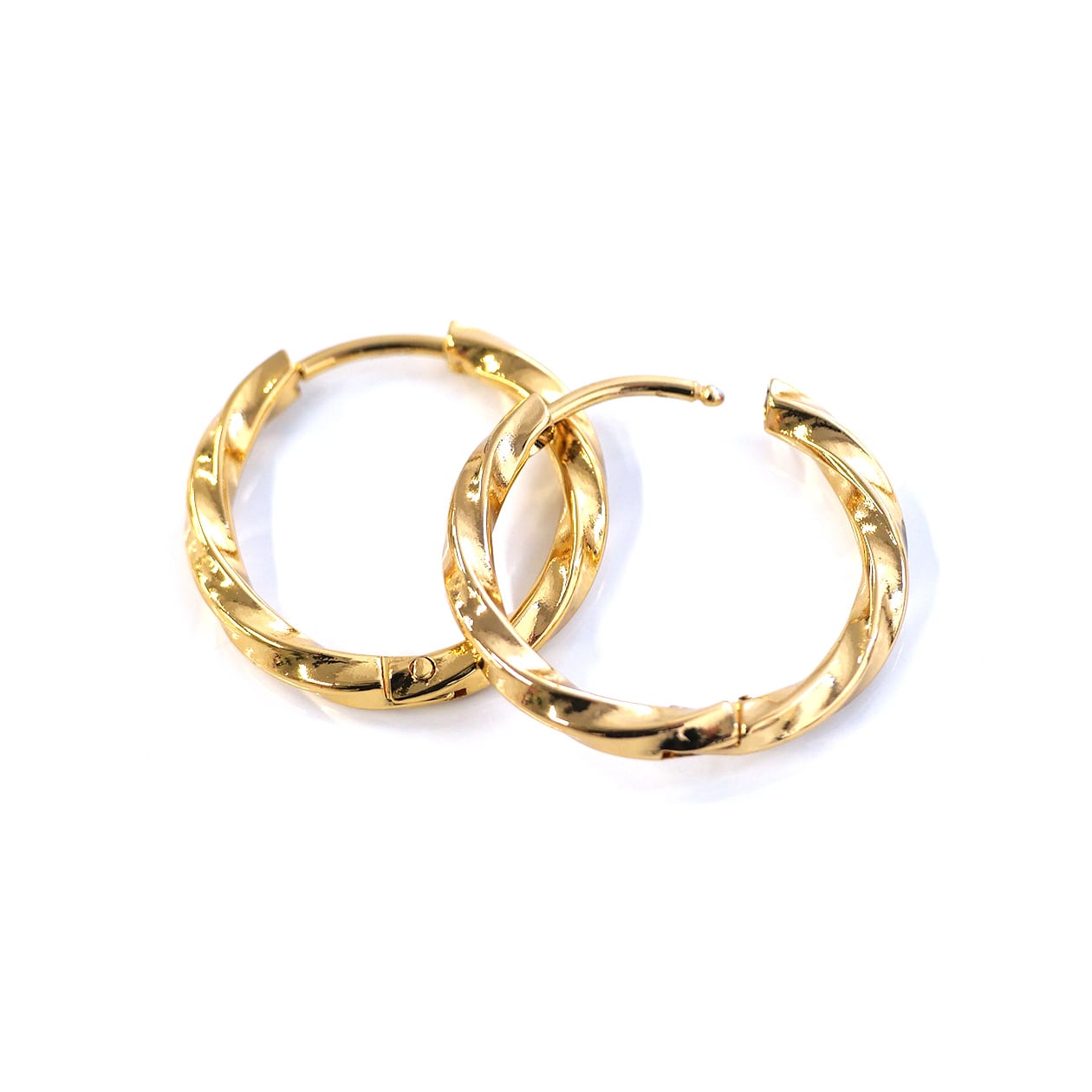 ほどよいボリューム感と、さりげないツイストラインが魅力のフープピアス。