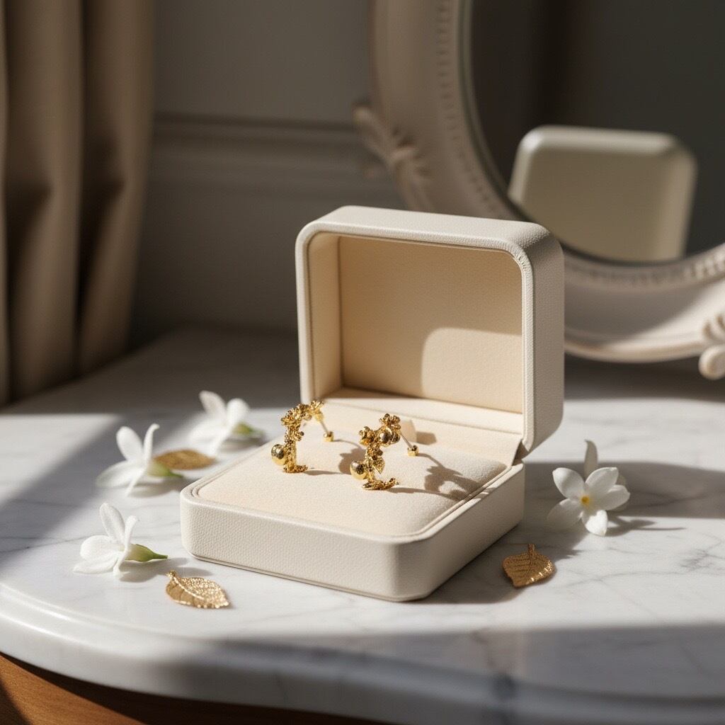 アシンメトリーなデザインが個性を引き立てるだけでなく、ゴールドの優しい輝きが上品で洗練された印象に。