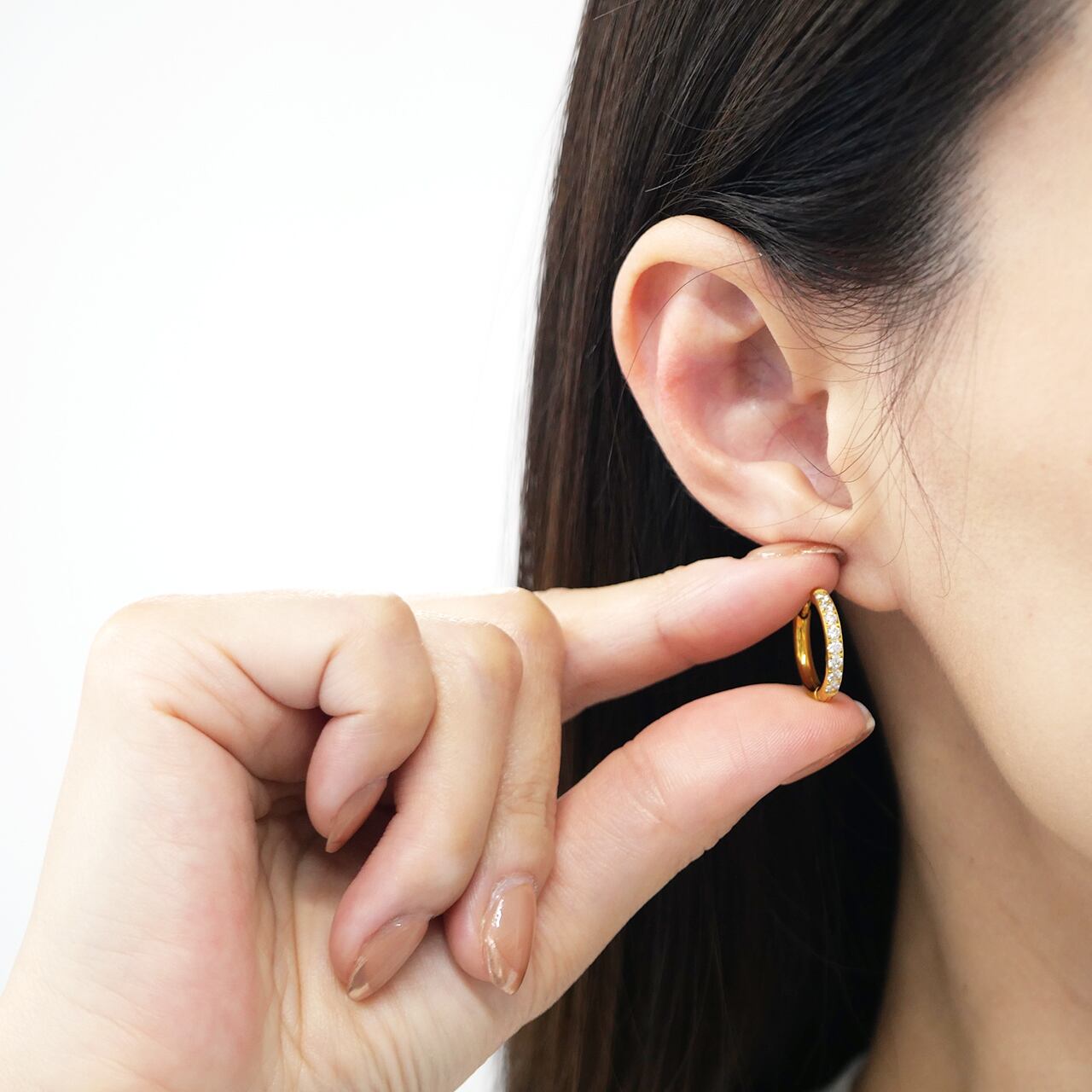 ・素材:サージカルステンレス 316L(金属アレルギーに配慮したサージカルステンレス(316L)を使用。水や汗に強く、つけっぱなしにもおすすめのアイテムです。)/ キュービックジルコニア