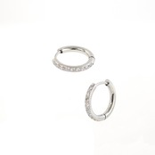 シンプルでありながら、煌めくキュービックジルコニアをあしらったLサイズのワンタッチ式フープピアス。S・M・Lの3サイズをご用意しており、お好みのボリューム感に合わせて選べます。耳元でさりげなく輝くSサイズ、日常使いにちょうどいい存在感のMサイズ、華やかさを引き立てるLサイズ。どのサイズもワンタッチ仕様で着脱が簡単です。ジルコニアの美しい輝きが、耳元に華やかさをプラスし、日常使いにぴったり。軽やかで着け心地も良く、耳元に上品なアクセントを加えるアイテムです。