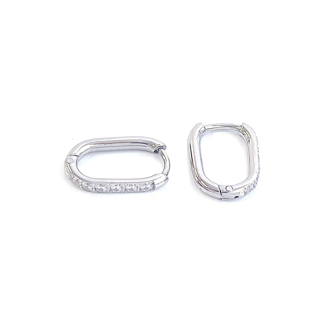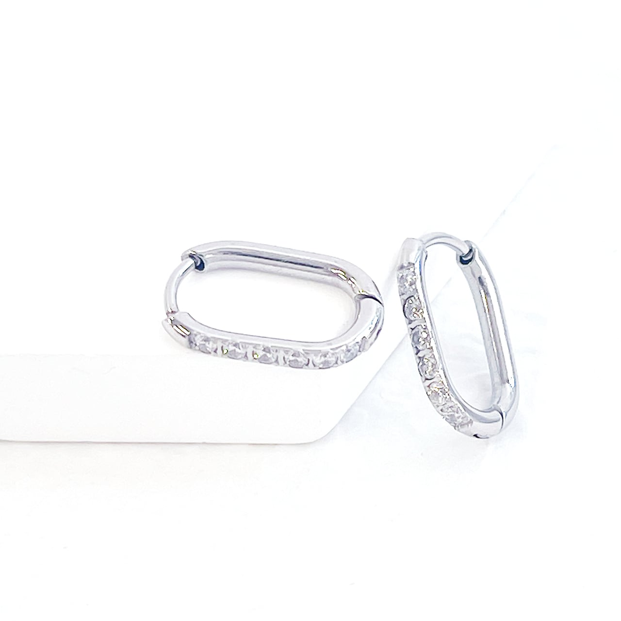 輝きをプラスする、シンプルかつ上品なサージカルステンレス製フープピアス。スクエアに近いオーバル型のフォルムに、キュービックジルコニアを丁寧に埋め込んだ、華やかさと実用性を兼ね備えたデザイン。ワンタッチ式で着脱も簡単、デイリーに使える快適な着け心地です。