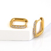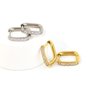 スクエアに近いオーバルフォルムが特徴の、上品なジルコニアフープピアス。フロントにキュービックジルコニアを丁寧にセットし、光を受けてさりげなく輝く華やかなアクセントをプラスします。主張しすぎないサイズ感で日常に取り入れやすく、オフィスにもフォーマルにも幅広く活躍。ワンタッチ式で着脱がしやすく、ストレスのない着け心地も魅力です。シンプルなシルエットの中に上質感が宿る、毎日のスタイルを品よく整えてくれる一品です。ゴールドとシルバーの2色展開。