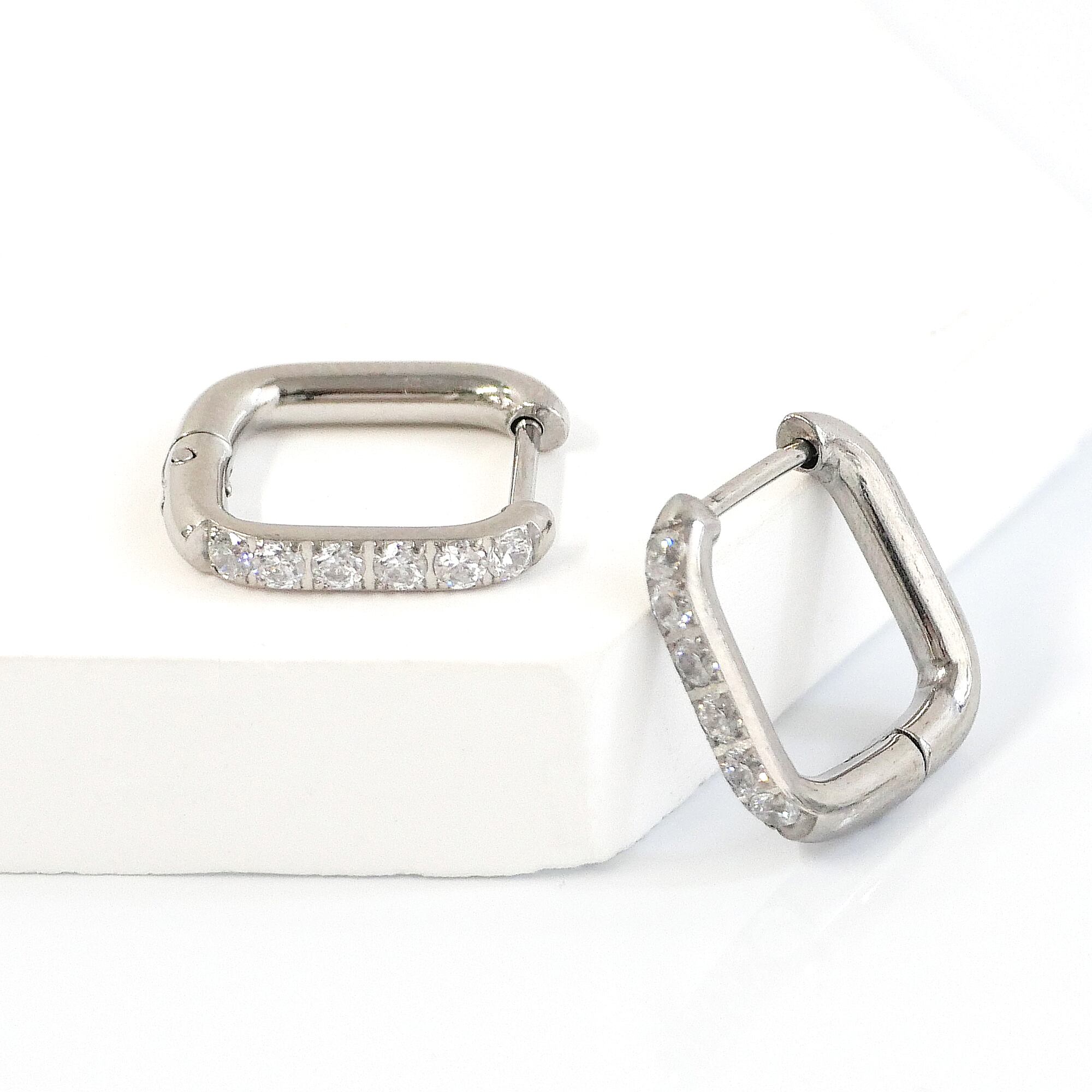 #フープピアス #ジルコニアピアス #スクエアピアス #サージカルステンレス316L #ステンレスピアス #ゴールドピアス #シルバーピアス #ワンタッチピアス #華奢ピアス #デイリーアクセサリー #オフィスアクセ #シンプルピアス #大人アクセサリー #AtelierBEcudes