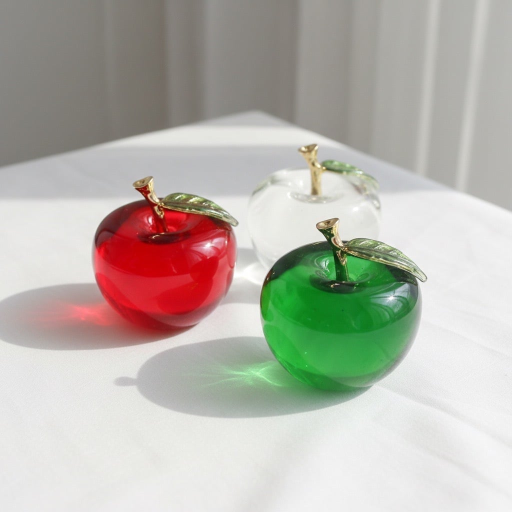 Green・Red・Crystalの3色をご用意しており、お部屋の雰囲気や季節に合わせてコーディネート可能。棚や窓辺にさりげなく置くだけで、空間に華やかさと遊び心をプラスしてくれるアイテムです。大切な方へのギフトとしてもおすすめです。