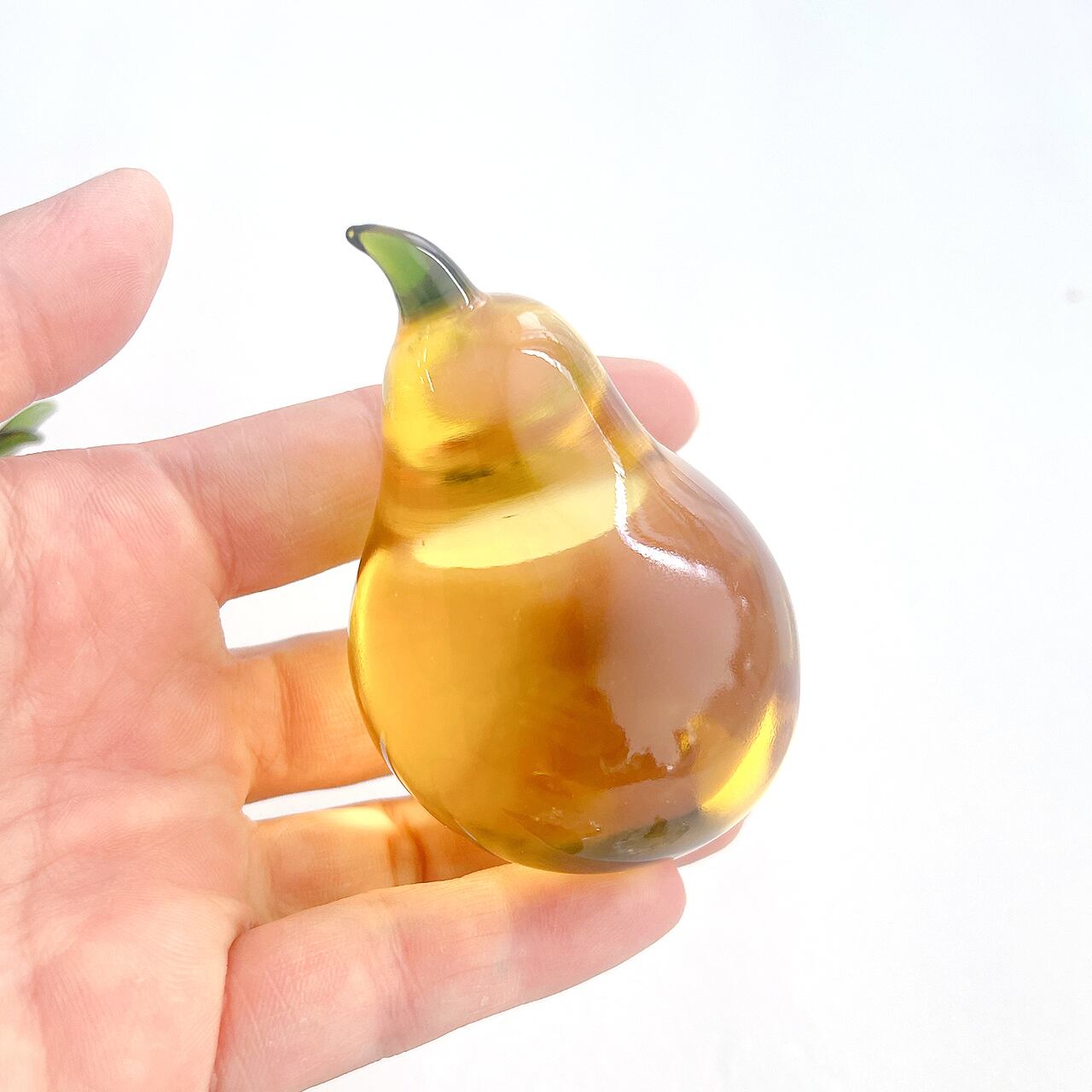 やわらかなフォルムが愛らしい、洋ナシモチーフのガラス製インテリアオブジェです。