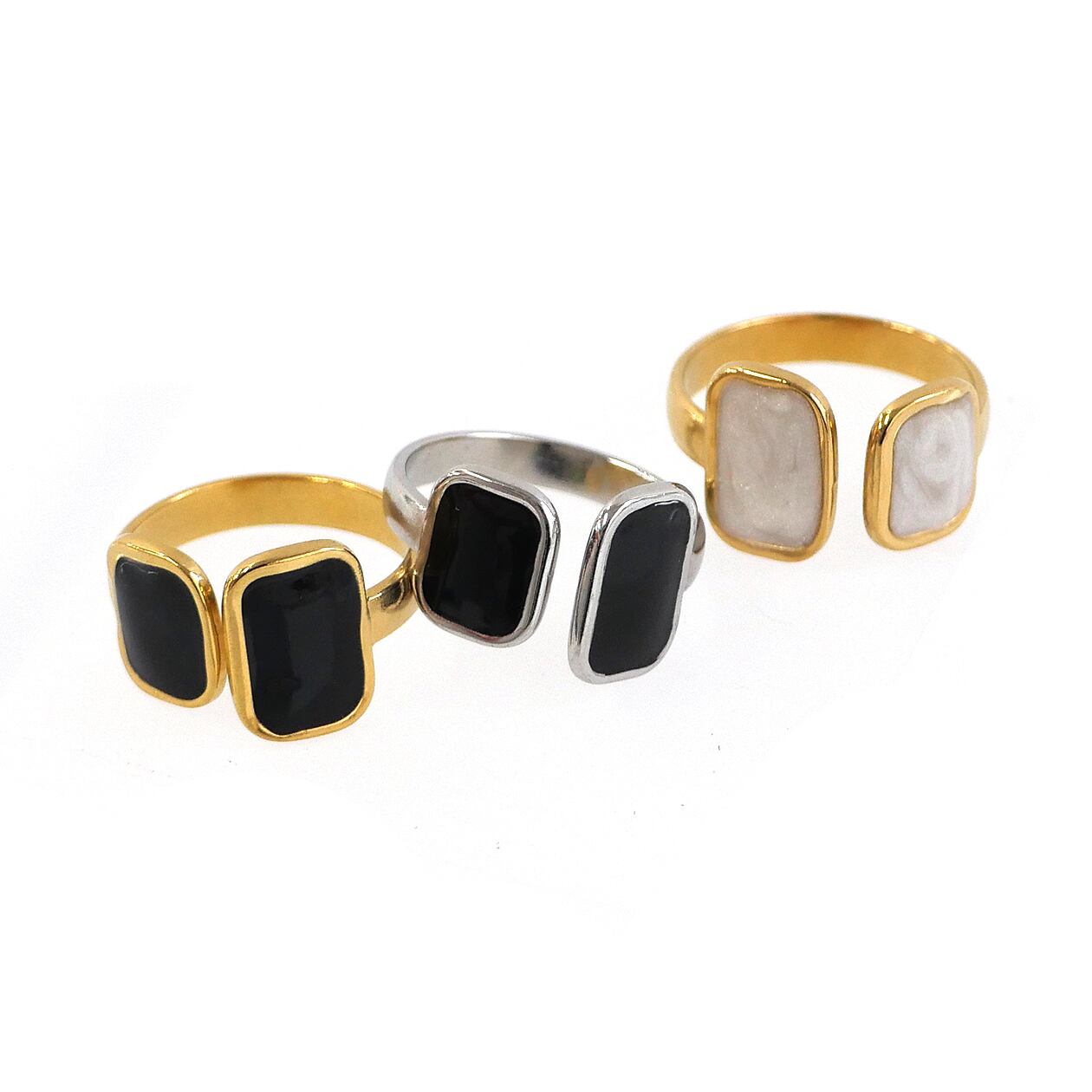 #サージカルステンレス316L #ステンレスリング #オープンリング #スクエアリング #プレートリング #エナメルリング #ブラックリング #ホワイトリング #ゴールドリング #モダンアクセサリー #大人アクセサリー #デイリーリング #ギフトにおすすめ #NOIRBLANC #AtelierBEcudes