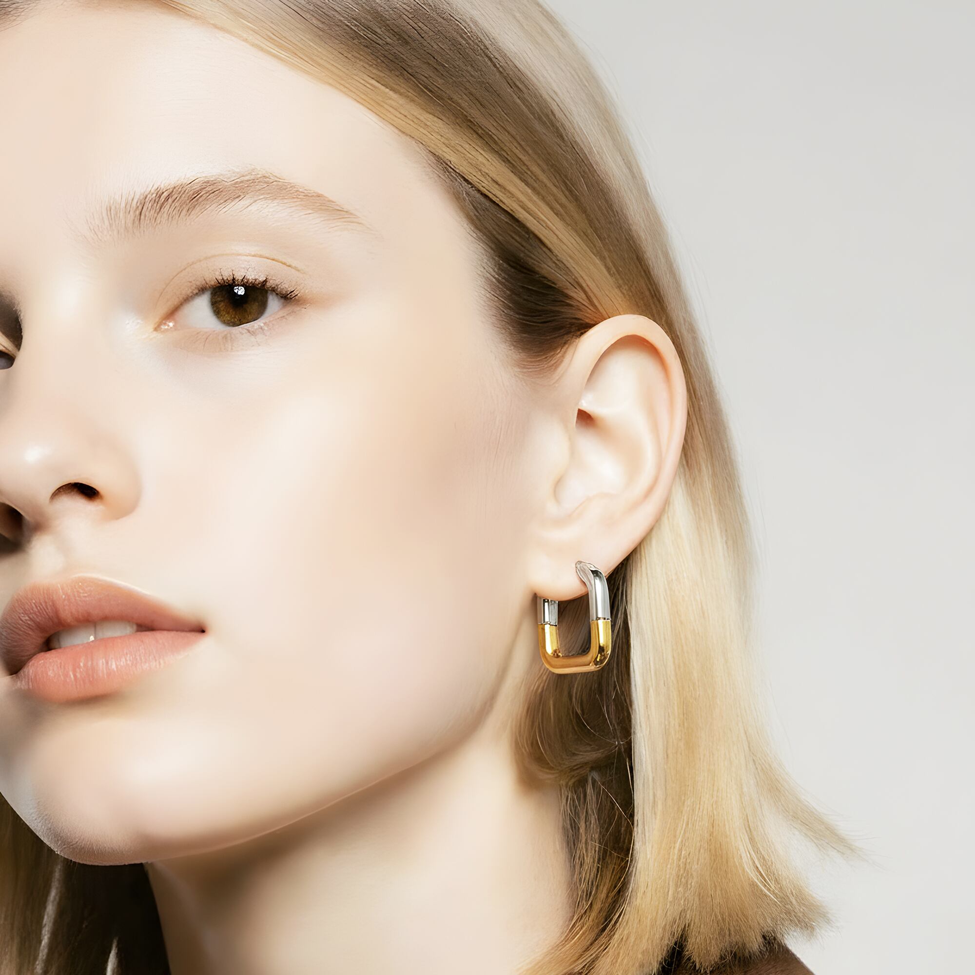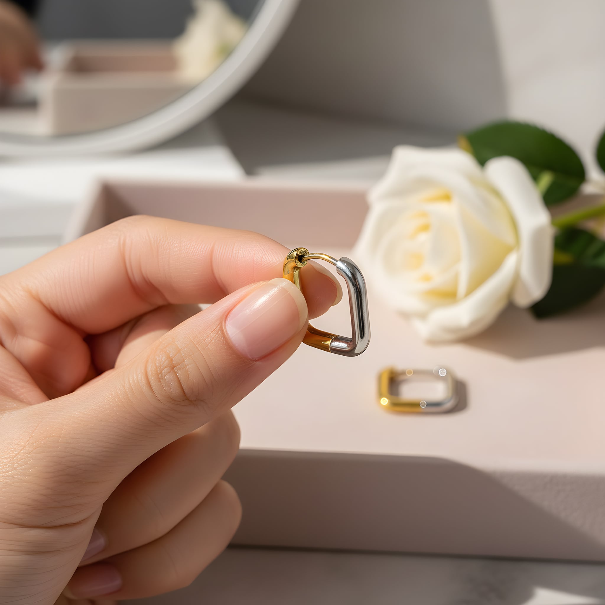 #スクエアフープピアス #バイカラーピアス #サージカルステンレス316L #ゴールドシルバー #フープピアス #ユニセックスアクセ #大人アクセサリー #シンプルピアス #ミニマルデザイン #金属アレルギー対応 #AtelierBEcudes