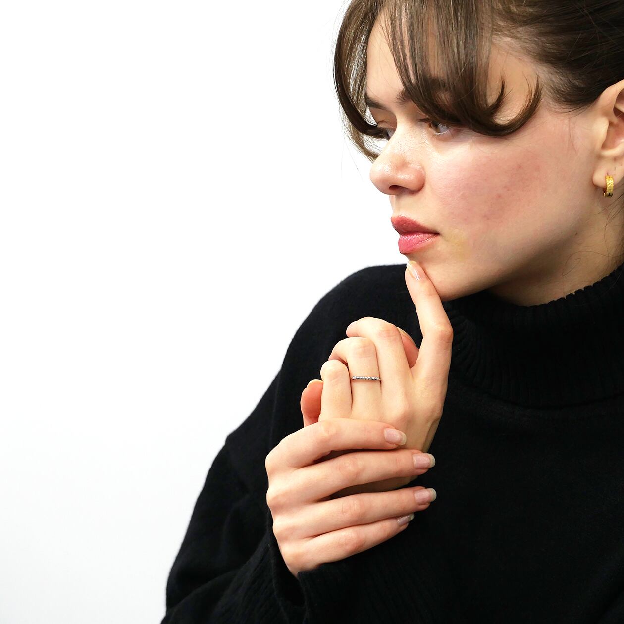 小さなビーズをぐるりと連ねた、控えめながらも個性が光るデザインリング。細身のフォルムにほどよい立体感が加わり、指先をさりげなく華やかに見せてくれます。シンプルで上品な佇まいのため、単品使いはもちろん、他のリングとの重ね付けにもぴったり。カジュアルからフォーマルまで幅広いスタイルに馴染む万能さも魅力です。カラーはゴールドとシルバーの2色、サイズは8〜13号まで豊富に展開しています。