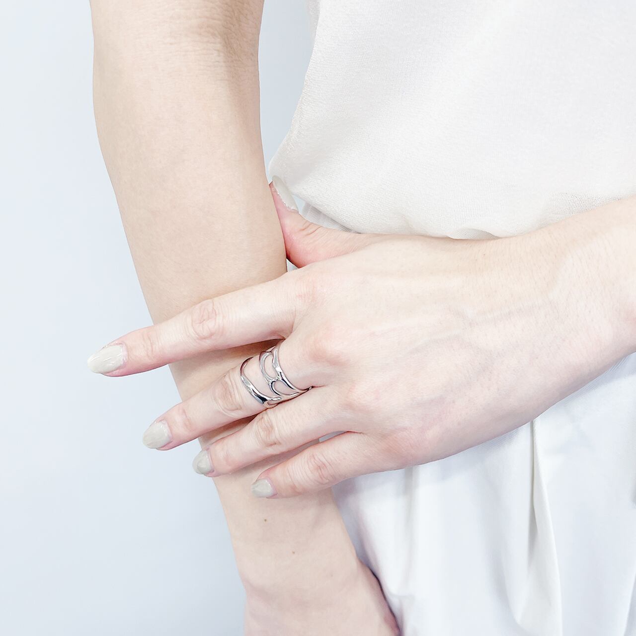 指にやさしくフィットするオープンリングは、わずかなサイズ調整が可能です。無理なく優しく広げたり閉じたりすることで、お好みのフィット感に調整いただけます。