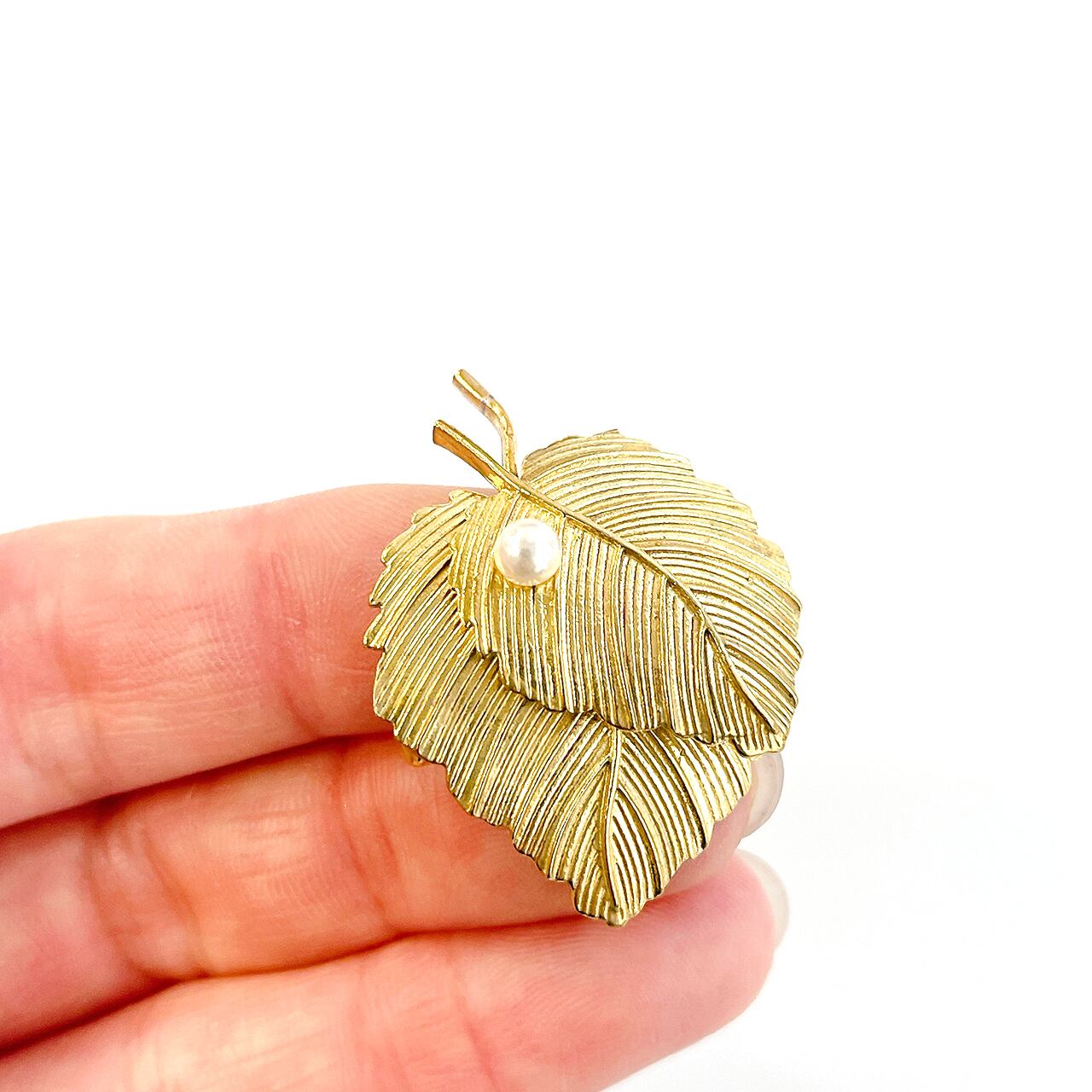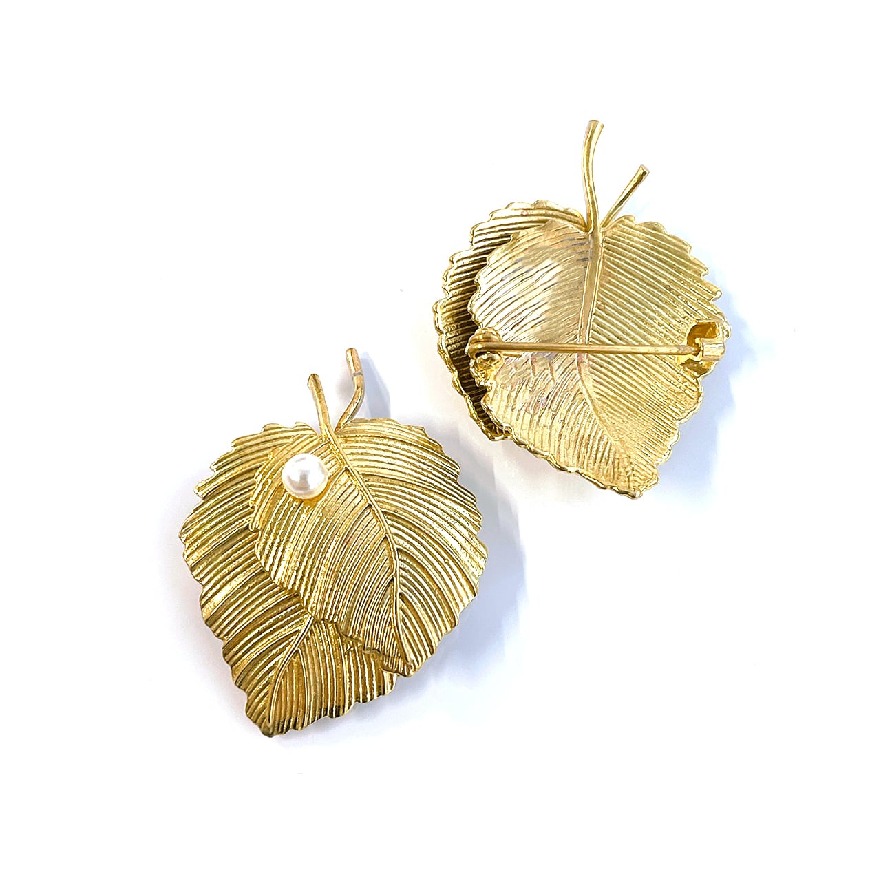 重なり合う葉の繊細なディテールに、小さなパールが上品に添えられたリーフモチーフの真鍮製ブローチ。アンティーク調ゴールドが落ち着いた華やかさを演出し、さまざまな装いにさりげないアクセントを添えてくれます。ジャケットやワンピース、ストール、帽子などのワンポイントに。季節を問わず使えるナチュラルモチーフで、ギフトとしても喜ばれるアイテムです。専用のボックス入りで、贈り物にもぴったりです。