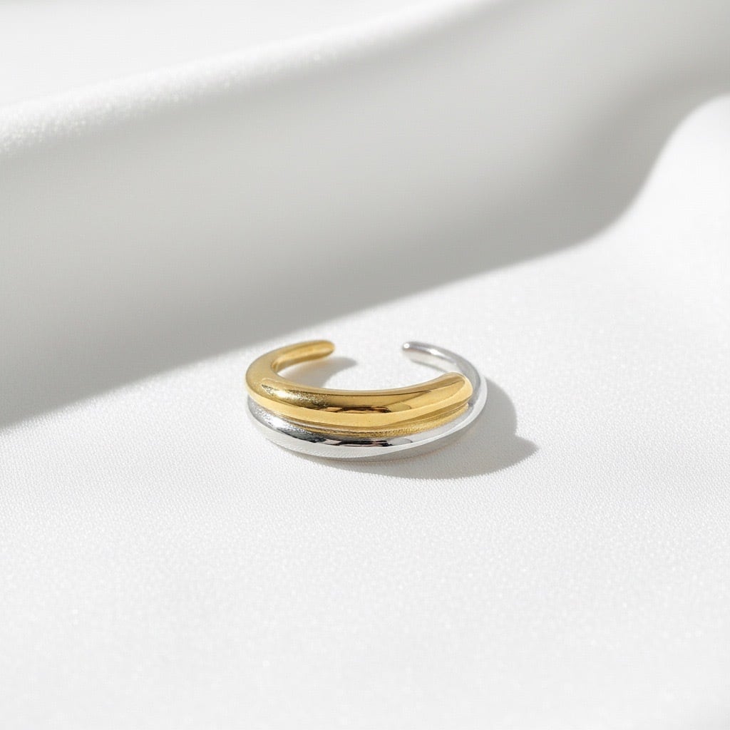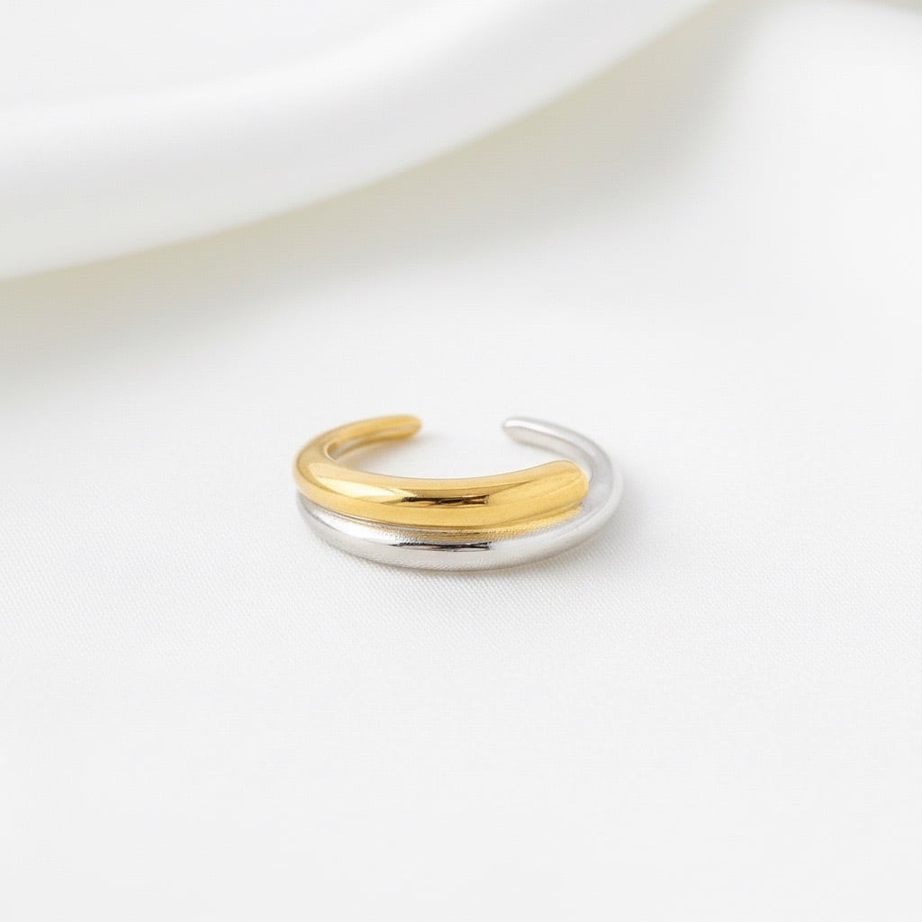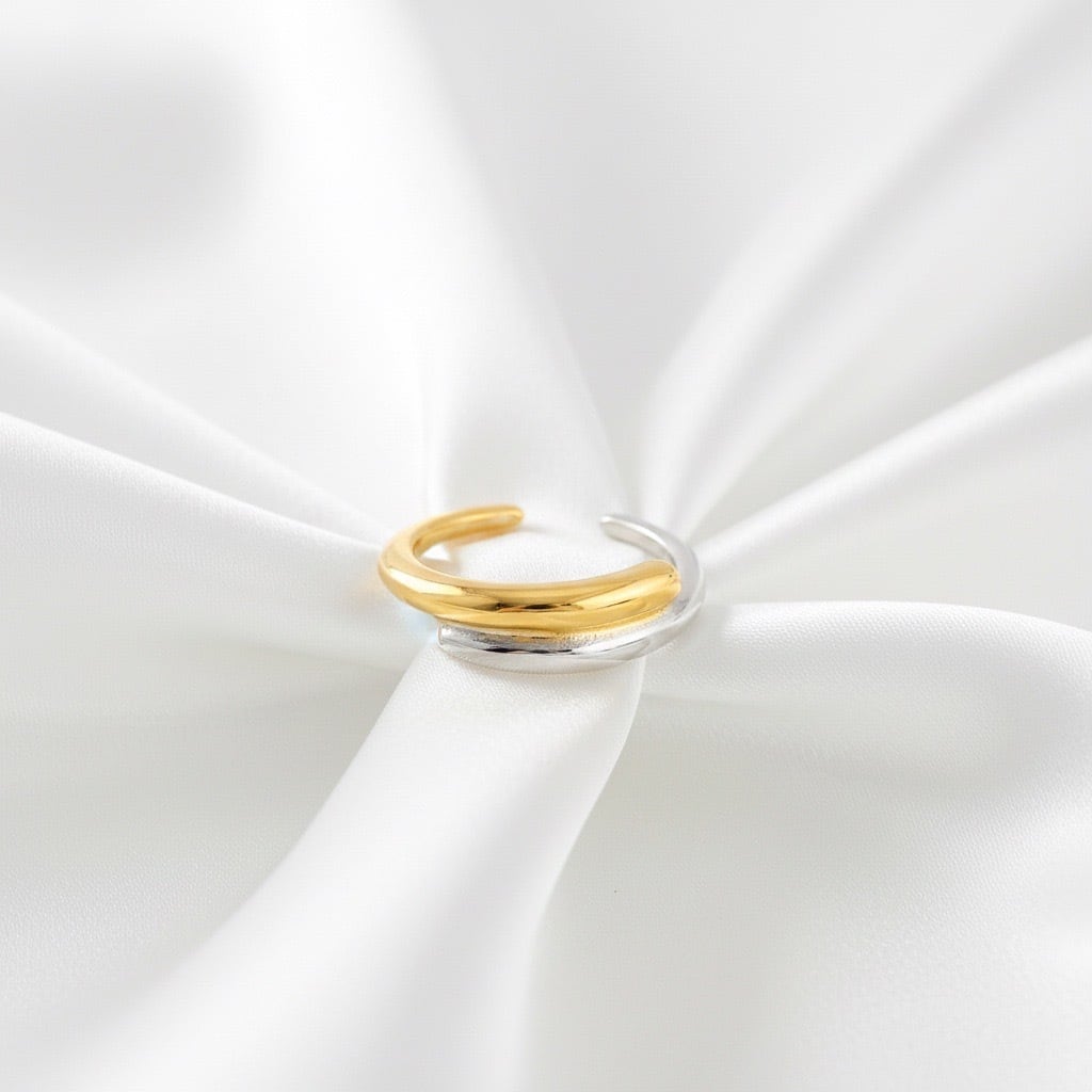 #サージカルステンレス316L #ステンレスリング #バイカラーリング #ゴールドシルバー #オープンリング #FUSIONシリーズ #シンプルリング #モダンアクセサリー #大人アクセサリー #ユニセックスリング #重ね付けリング #デイリーアクセサリー #ギフトにおすすめ #AtelierBEcudes
