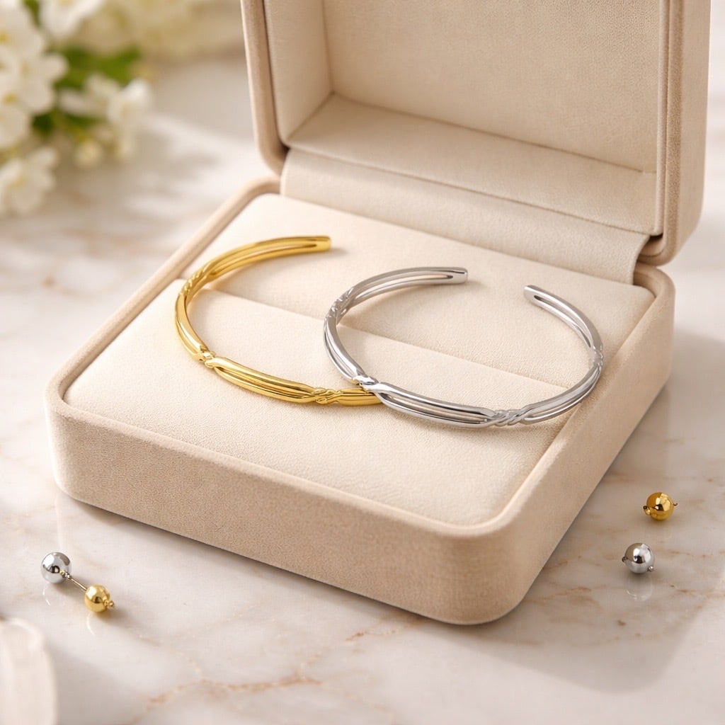#サージカルステンレス316L #ステンレスバングル #ツイストバングル #シンプルバングル #ゴールドバングル #シルバーバングル #ユニセックスアクセサリー #大人アクセサリー #デイリーバングル #ミニマルアクセサリー #AtelierBEcudes #ギフトにおすすめ