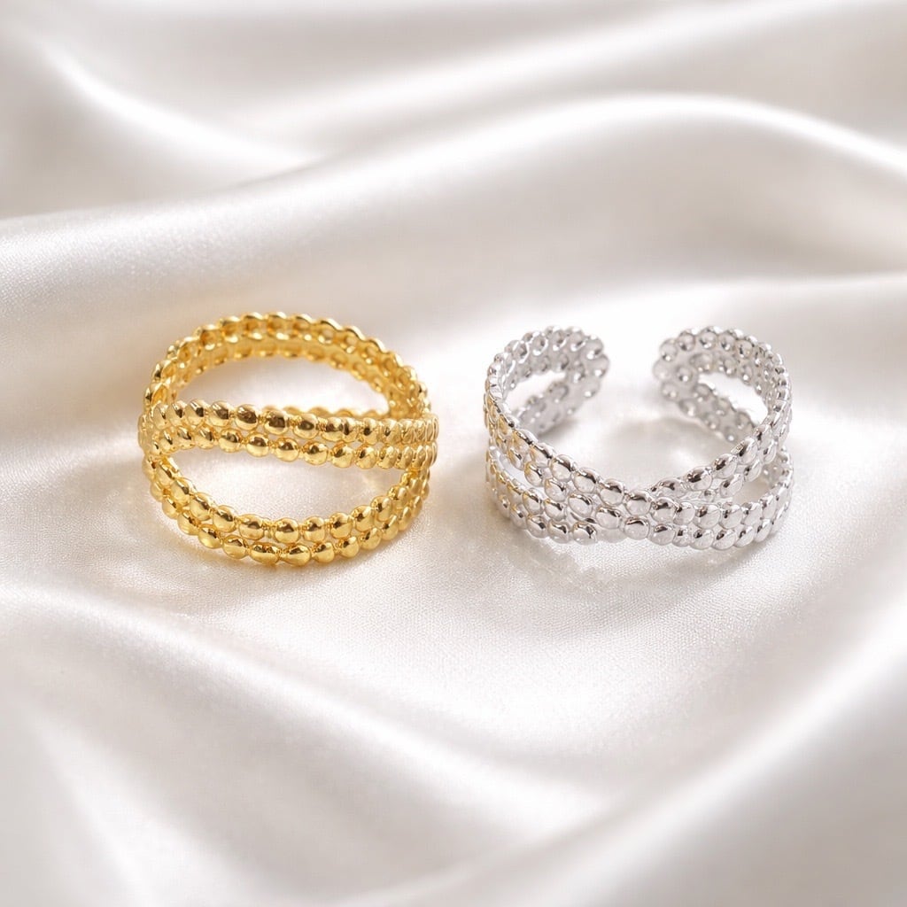 #サージカルステンレス316L #ステンレスリング #クロスラインリング #ビーズデザイン #オープンリング #ゴールドリング #シルバーリング #大人アクセサリー #デイリーリング #モードアクセサリー #AtelierBEcudes #ギフトにおすすめ