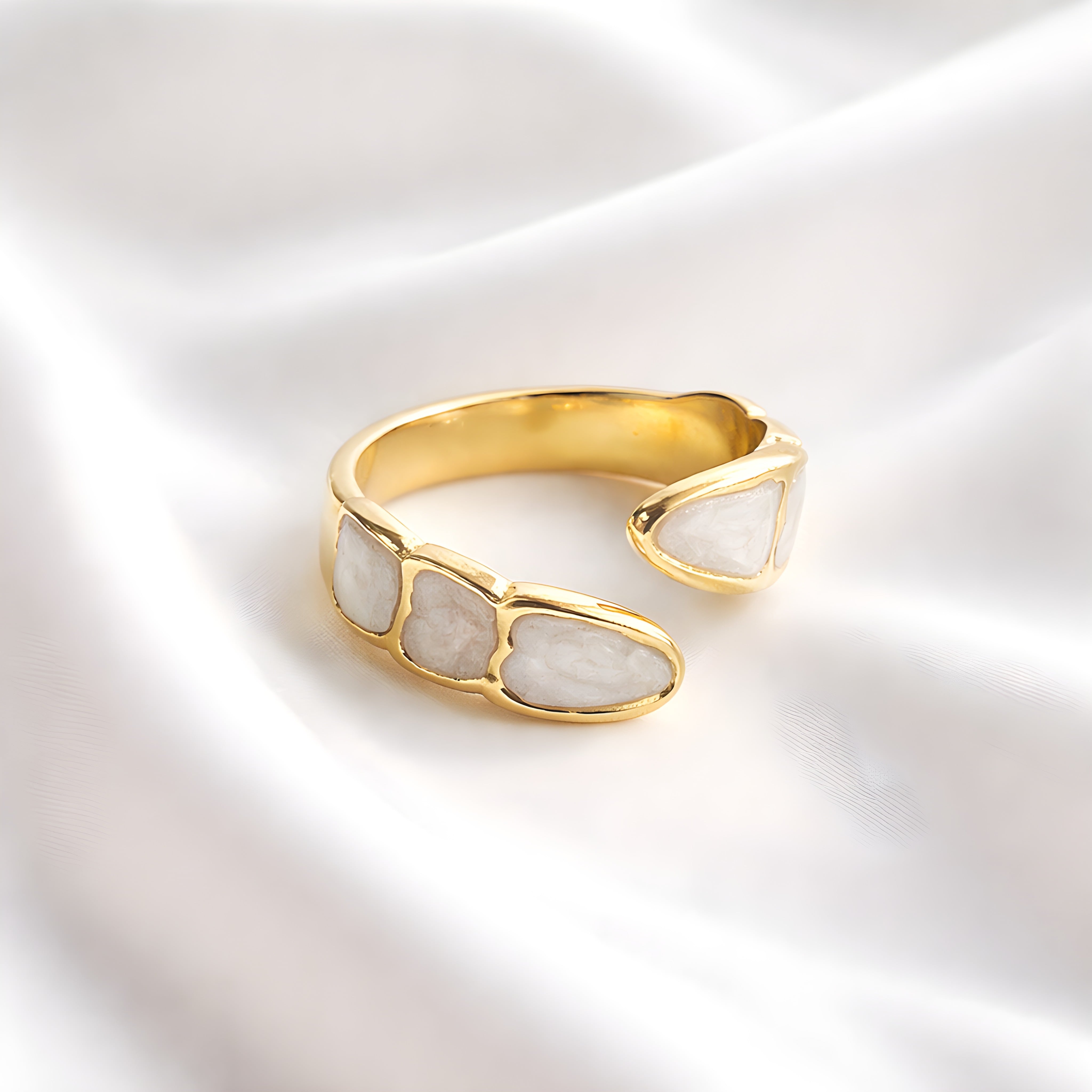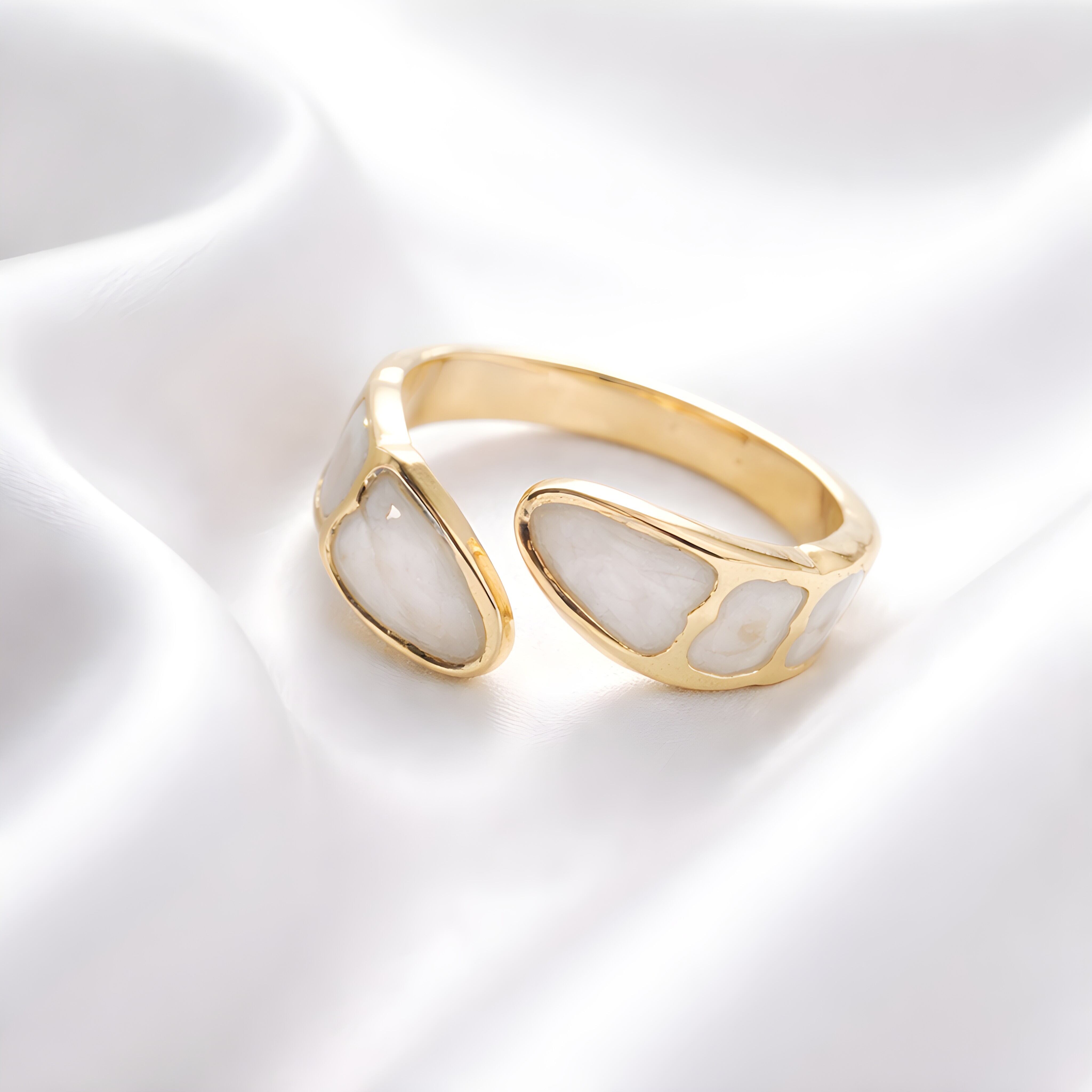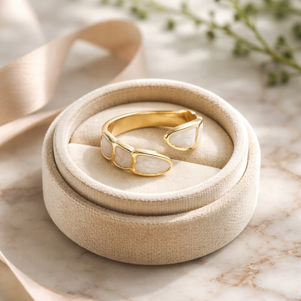 指にやさしくフィットするオープンリングは、わずかなサイズ調整が可能です。無理なく優しく広げたり閉じたりすることで、お好みのフィット感に調整いただけます。
