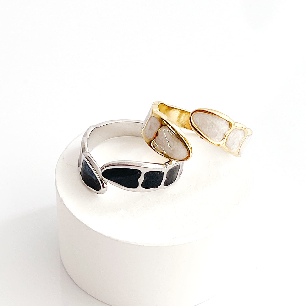 自然の流れを思わせるオーガニックなラインに、カラーを組み合わせたデザインリング。ひとつひとつ異なる模様のような表情が、指元に個性とアート感を添えます。 ブラックはシックでモードな印象に、ホワイトは柔らかく洗練された雰囲気に。カラーによって異なるスタイルを演出できるのも魅力です。