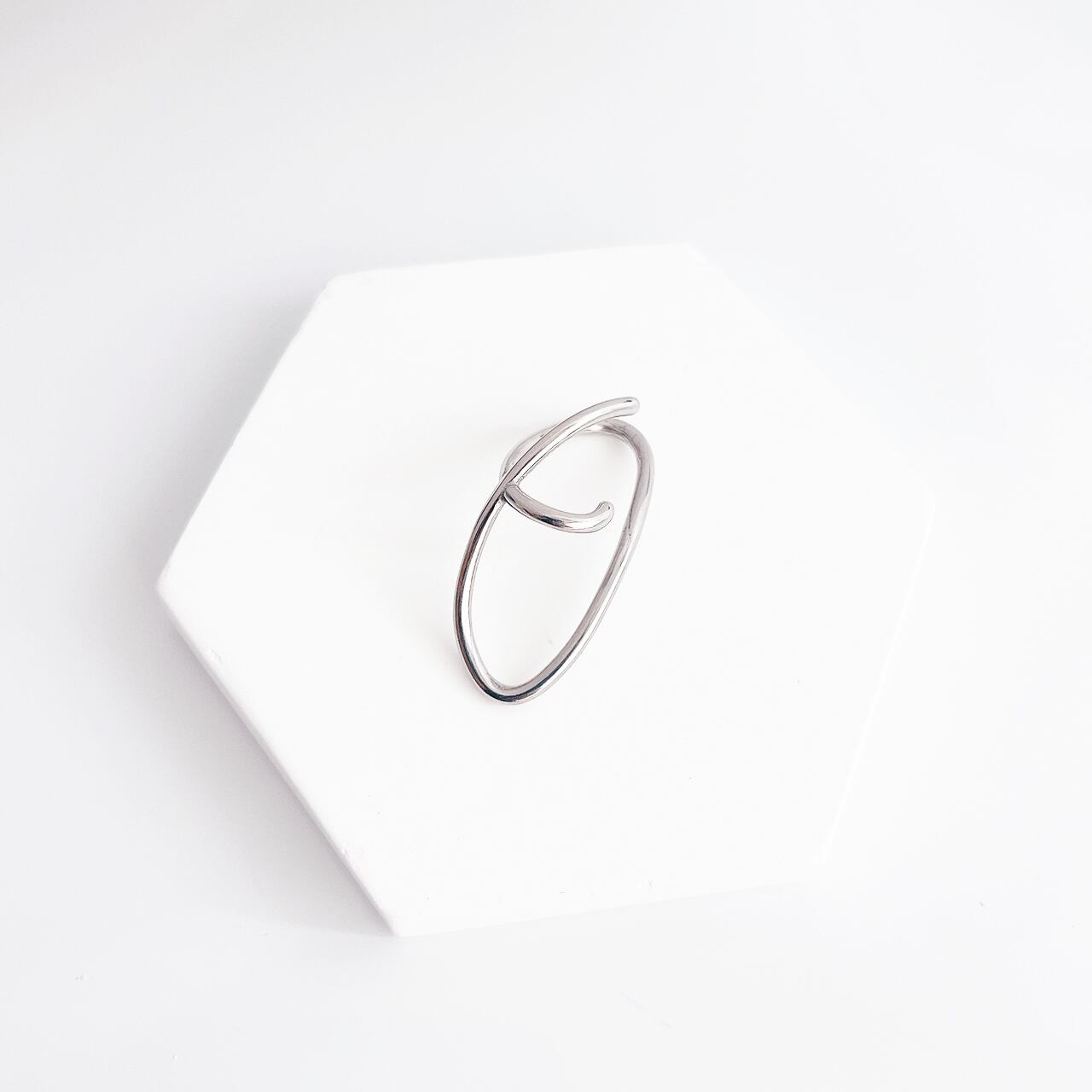 しなやかな曲線が耳元を包み込む、モダンで洗練された印象のイヤーカフ。ひと筆書きのような流れるフォルムは、シンプルながら存在感があり、スタイリングに上品なアクセントを添えます。単品使いはもちろん、他のピアスやイヤーカフとの重ね付けにも最適です。