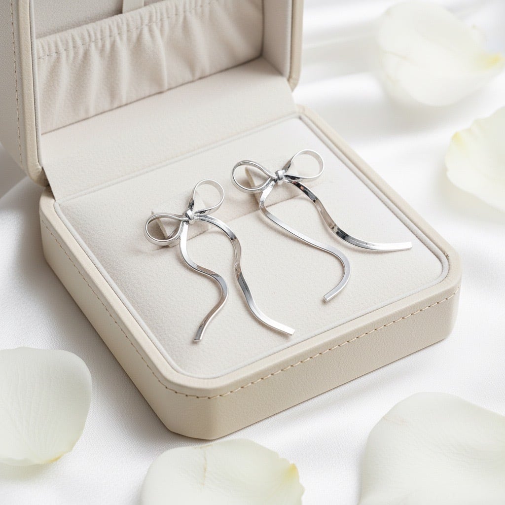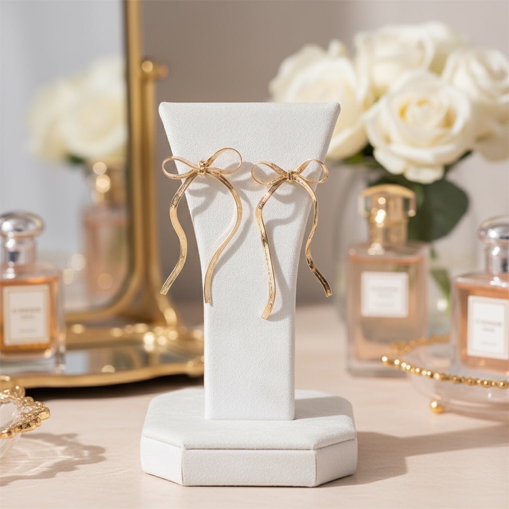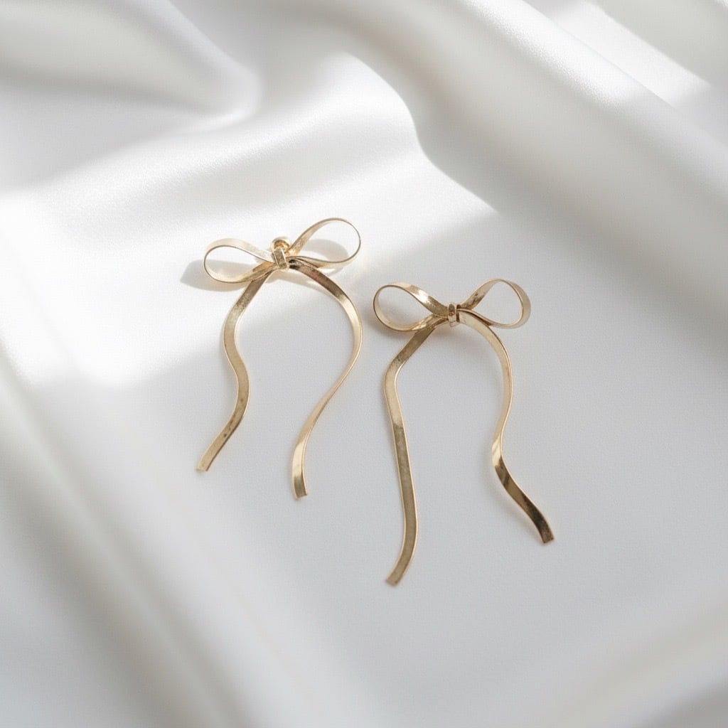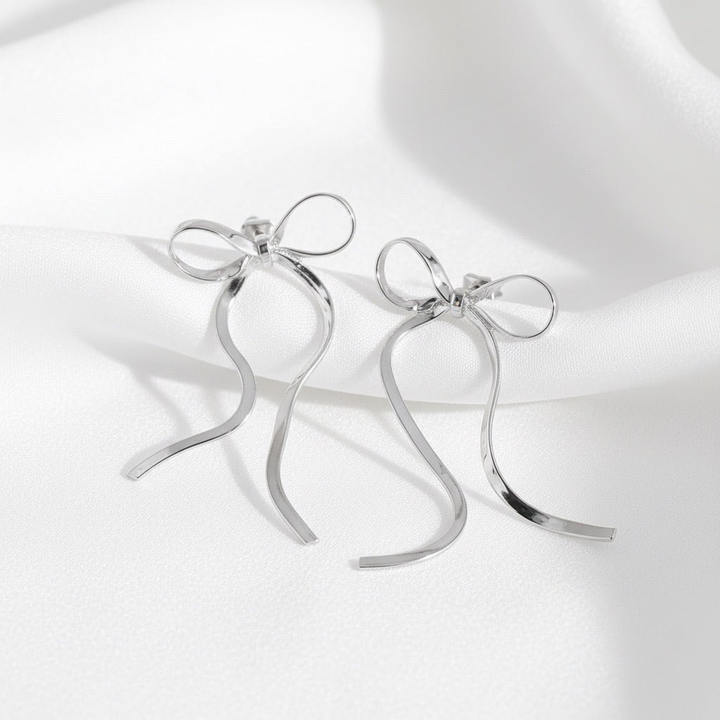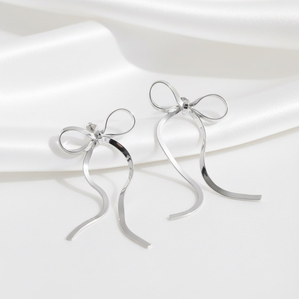 #サージカルステンレス316L #ステンレスピアス #ロングピアス #リボンピアス #揺れるピアス #ゴールドピアス #シルバーピアス #フェミニンアクセサリー #大人アクセサリー #デイリーピアス #AtelierBEcudes #ギフトにおすすめ