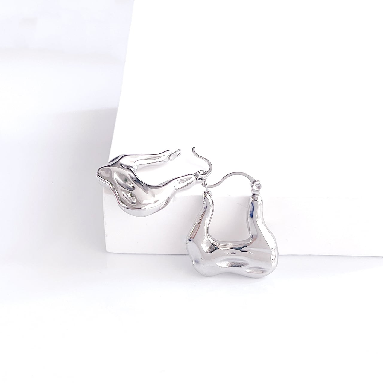 有機的なウェーブラインが特徴的な、存在感のあるサージカルステンレス製フープピアス。流れるような立体フォルムが耳元にモードな印象を与え、シンプルながらも個性を引き立てます。程よいボリューム感で、カジュアルからドレスアップまで幅広いスタイルにマッチ。サージカルステンレス316Lを使用しており、水や汗に強くデイリーにも安心してお使いいただけます。