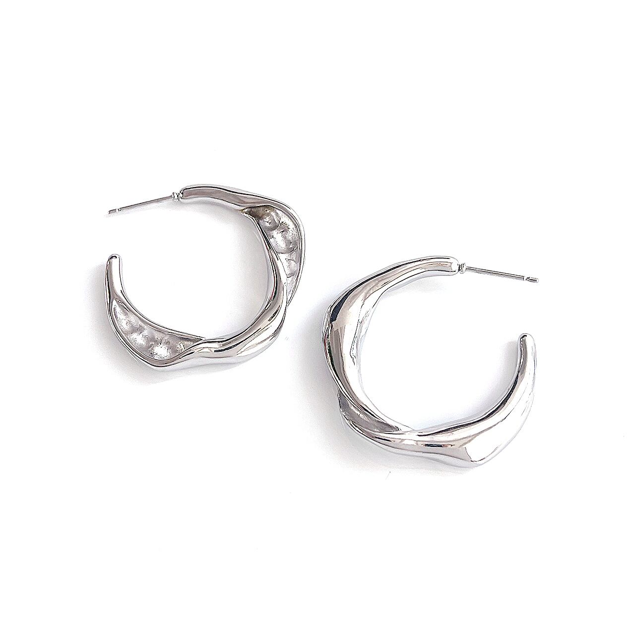 流れるようなツイストデザインが魅力のサージカルステンレス製フープピアス。柔らかな曲線が光を反射し、シンプルながらも存在感のある仕上がりです。カジュアルからフォーマルまで幅広いシーンで活躍し、コーディネートに上品なアクセントを添えてくれます。