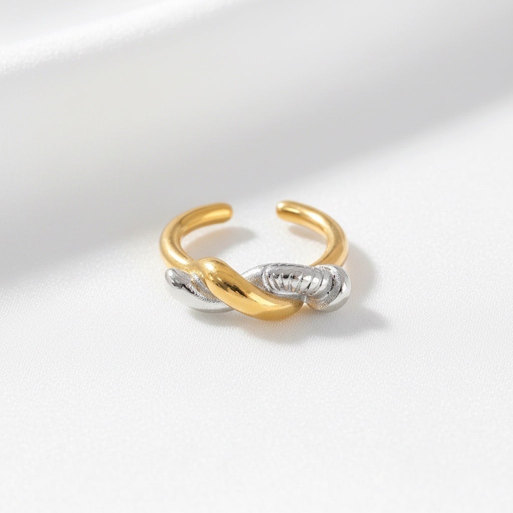 #サージカルステンレス316L #ステンレスリング #バイカラーリング #ノットリング #結び目モチーフ #FUSIONシリーズ #ゴールドシルバー #大人アクセサリー #モダンアクセサリー #デイリーリング #AtelierBEcudes #ギフトにおすすめ