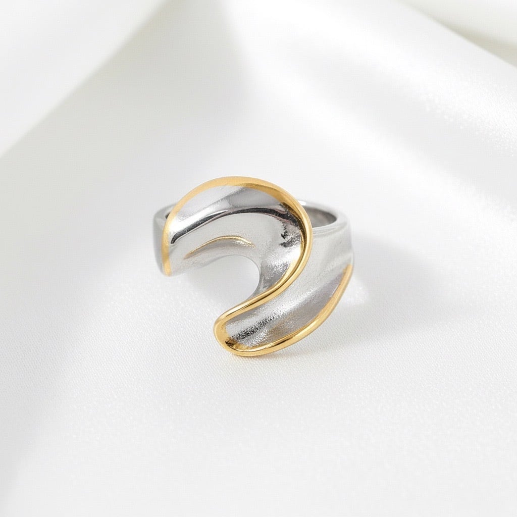 #サージカルステンレス316L #ステンレスリング #バイカラーリング #ウェーブリング #FUSIONシリーズ #ゴールドシルバー #モードアクセサリー #大人アクセサリー #ボリュームリング #デイリーリング #AtelierBEcudes #ギフトにおすすめ