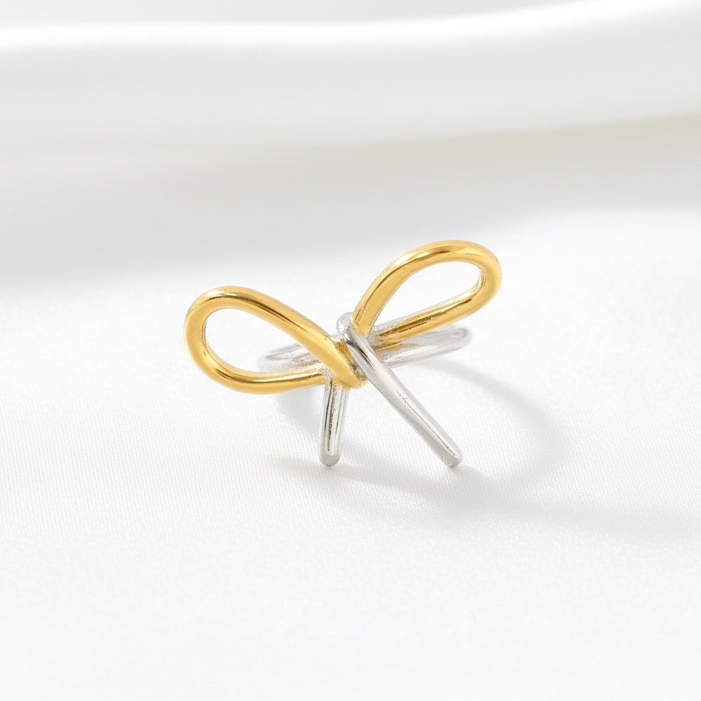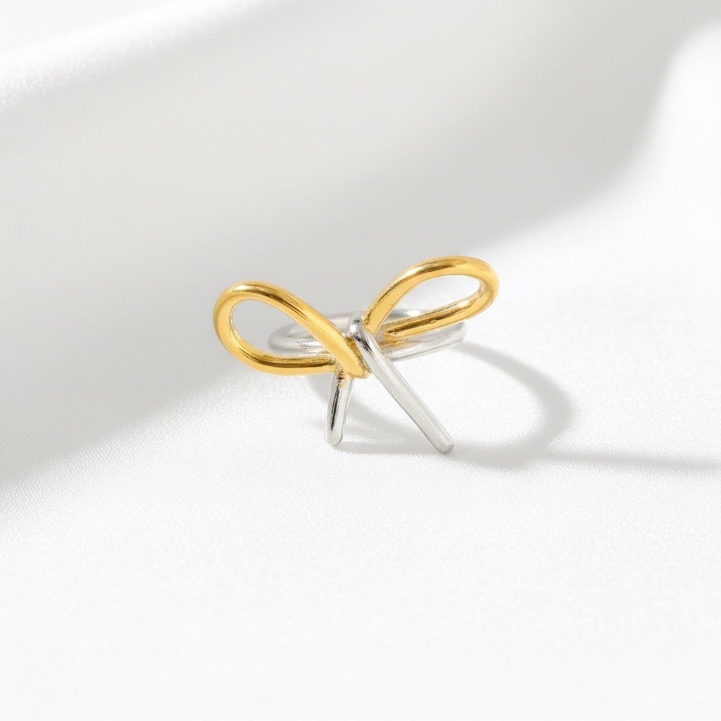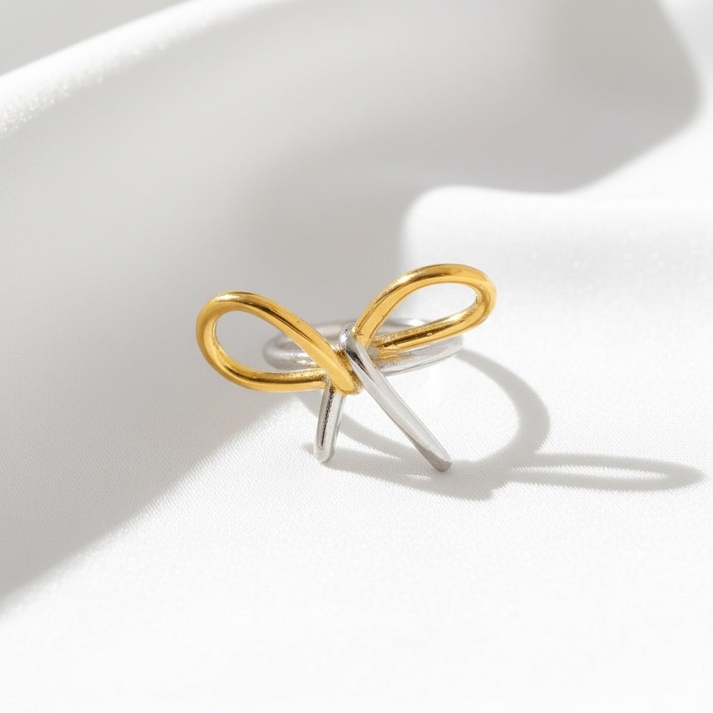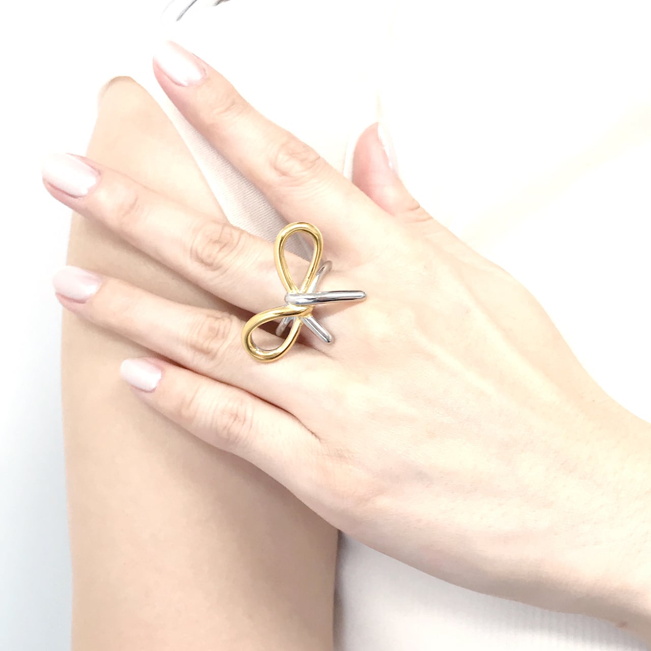 #サージカルステンレス316L #ステンレスリング #バイカラーリング #リボンモチーフ #FUSIONシリーズ #ゴールドシルバー #大人可愛いアクセサリー #モダンアクセサリー #デイリーリング #ギフトにおすすめ #AtelierBEcudes
