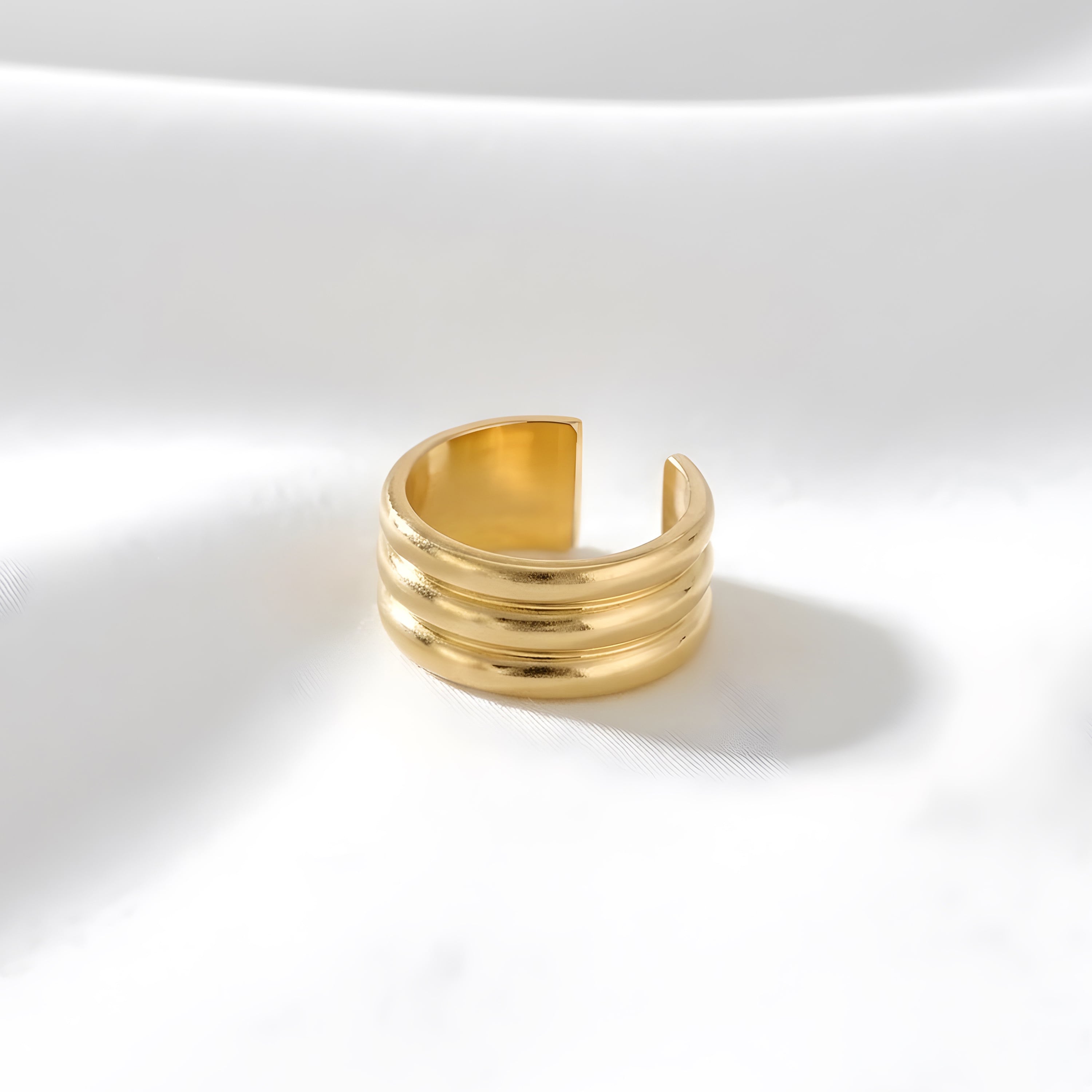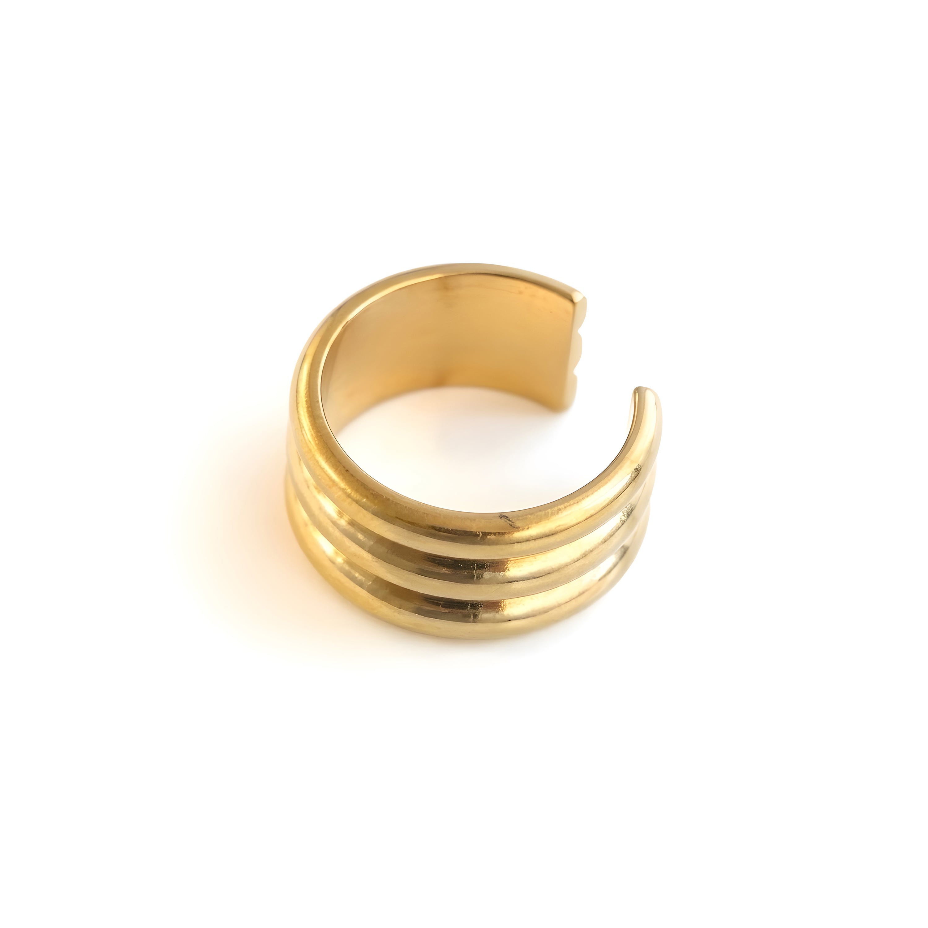 トリプルラインイヤーカフ(片耳用)|サージカルステンレス316L ゴールド【stef06】