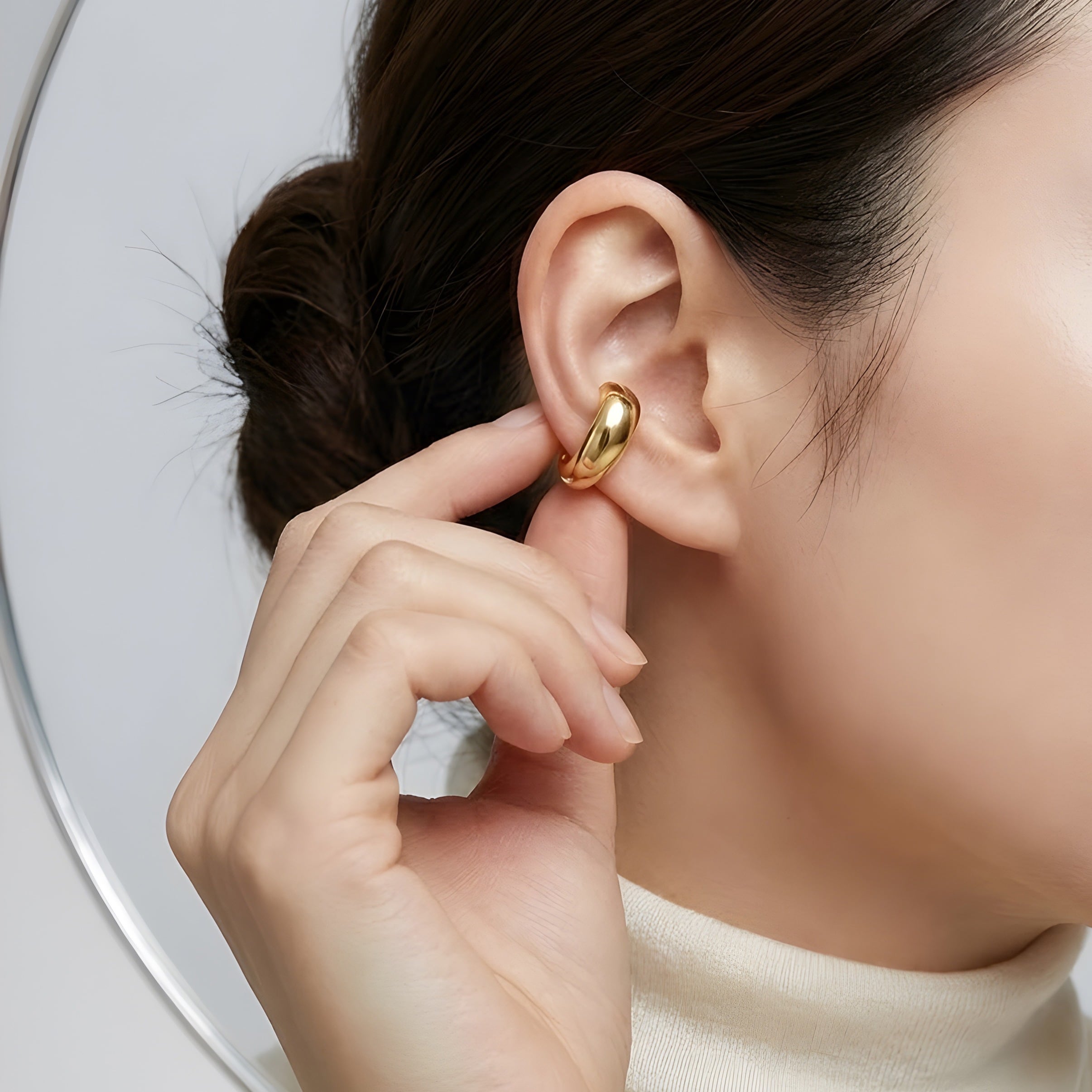 #サージカルステンレス316L #イヤーカフ #ボリュームイヤーカフ #片耳用 #ゴールドアクセサリー #ミニマルアクセサリー #重ね付け #大人アクセサリー #デイリーアクセサリー #金属アレルギー配慮 #AtelierBEcudes #ギフトにおすすめ
