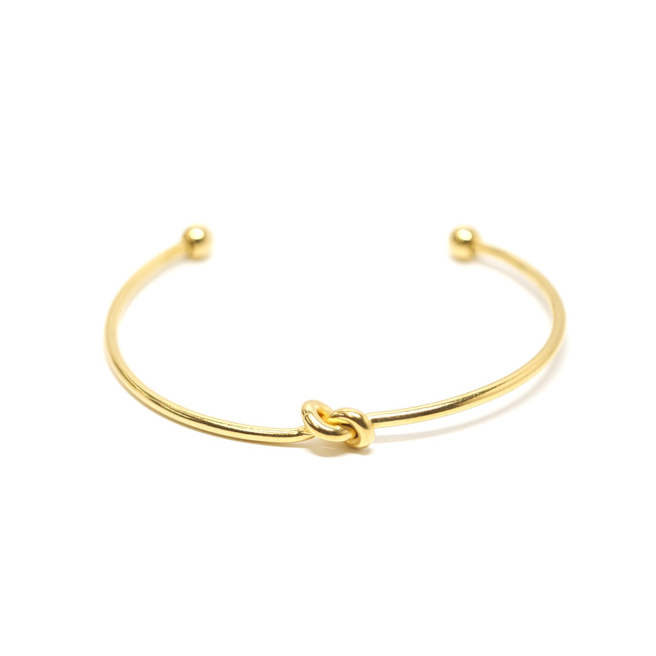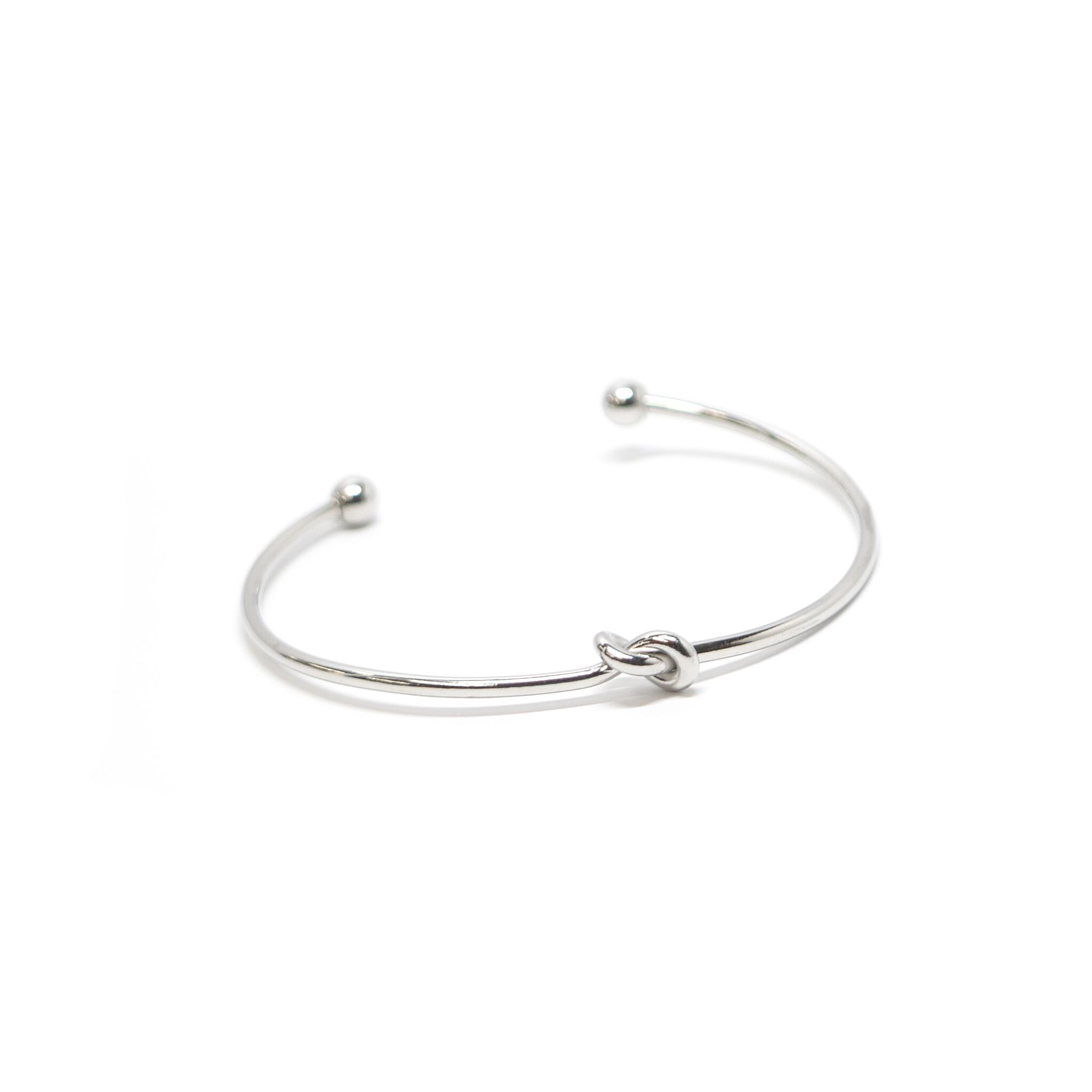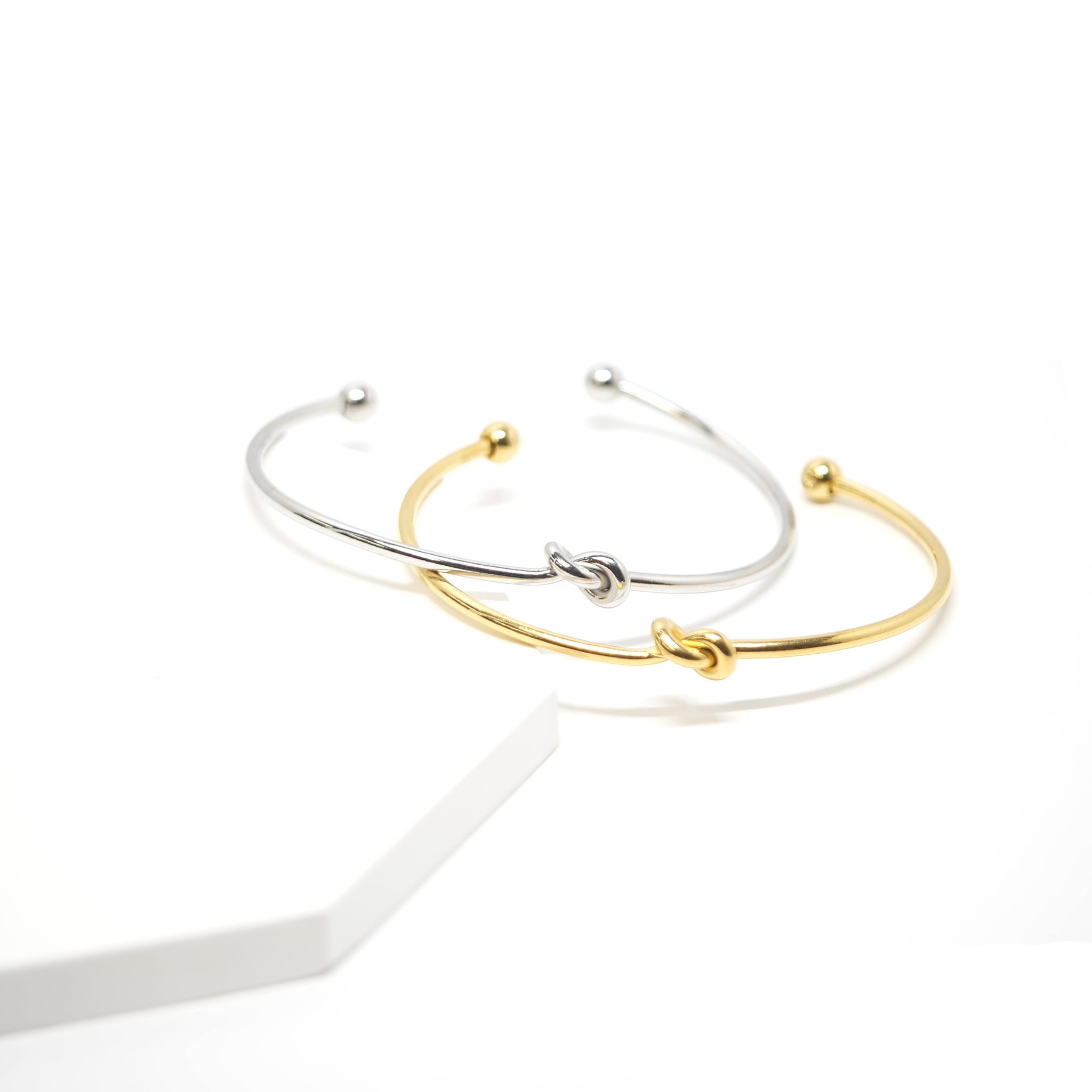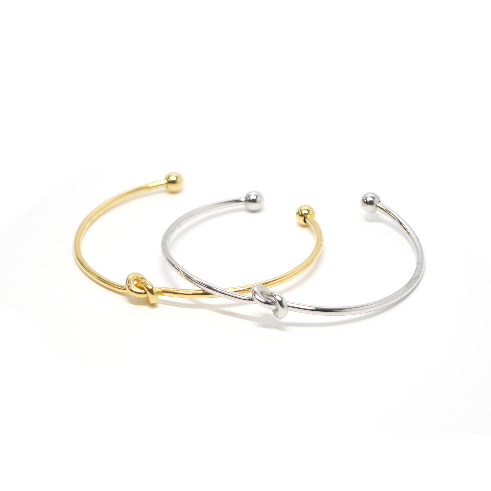 シンプルなラインに結び目モチーフをあしらった、サージカルステンレス製のバングル。結び目は「絆」や「つながり」を象徴し、大切な人へのギフトにもぴったりのアイテムです。