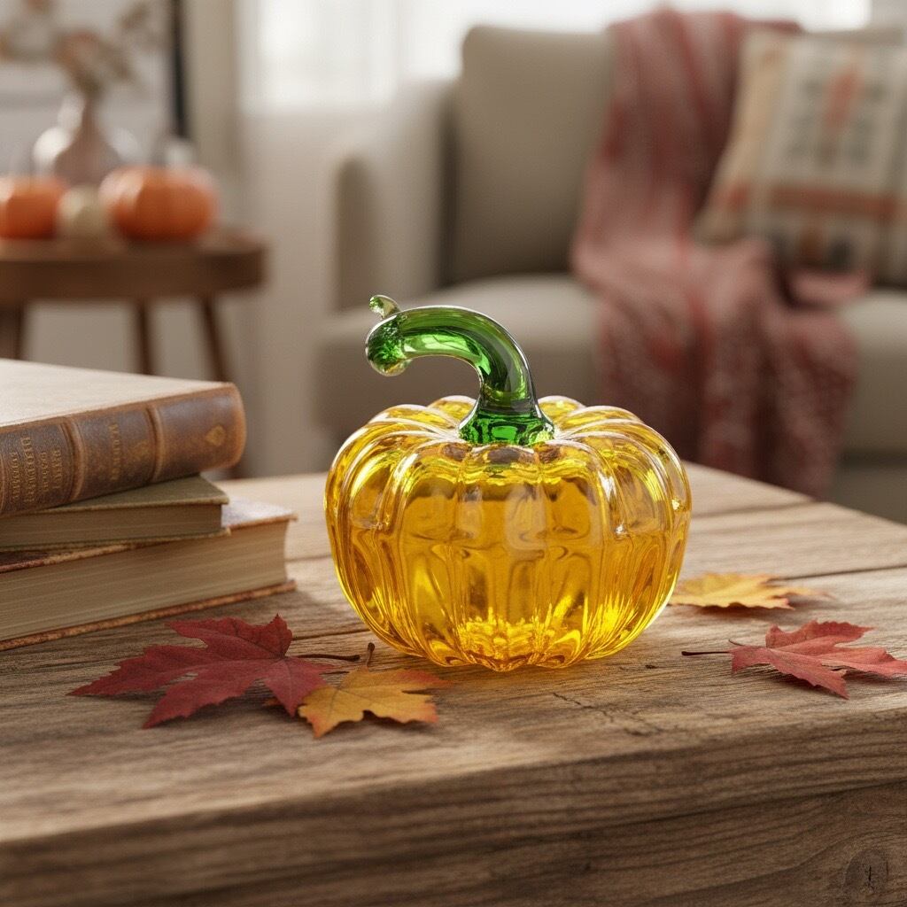 #ガラスオブジェ #パンプキンオブジェ #かぼちゃモチーフ #インテリア雑貨 #季節のインテリア #ハロウィンインテリア #ガラス雑貨 #ハンドメイド雑貨 #リビングインテリア #玄関インテリア #ギフトにおすすめ #AtelierBEcudes