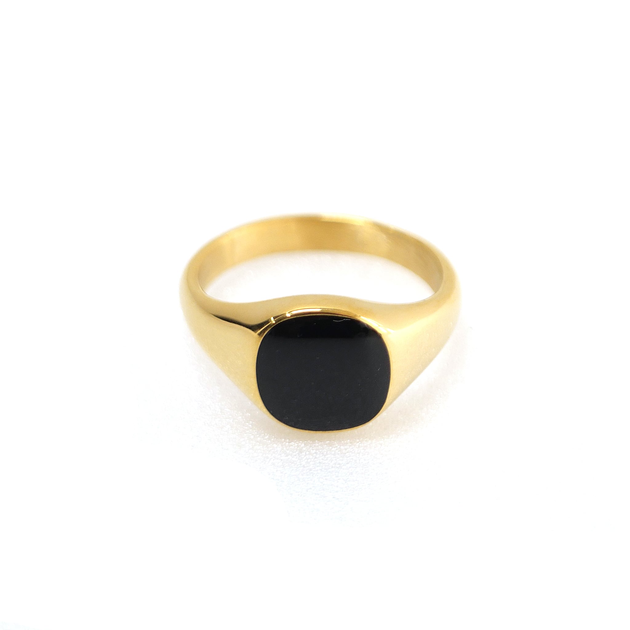 艶やかなブラックオニキスを角丸スクエア型にセットした、モダンな印象のシグネットリング。サージカルステンレス製のしっかりとした厚みと程よい重みがあり、シンプルながらも上質な佇まいが魅力。モードスタイルにおすすめのアイテムです。