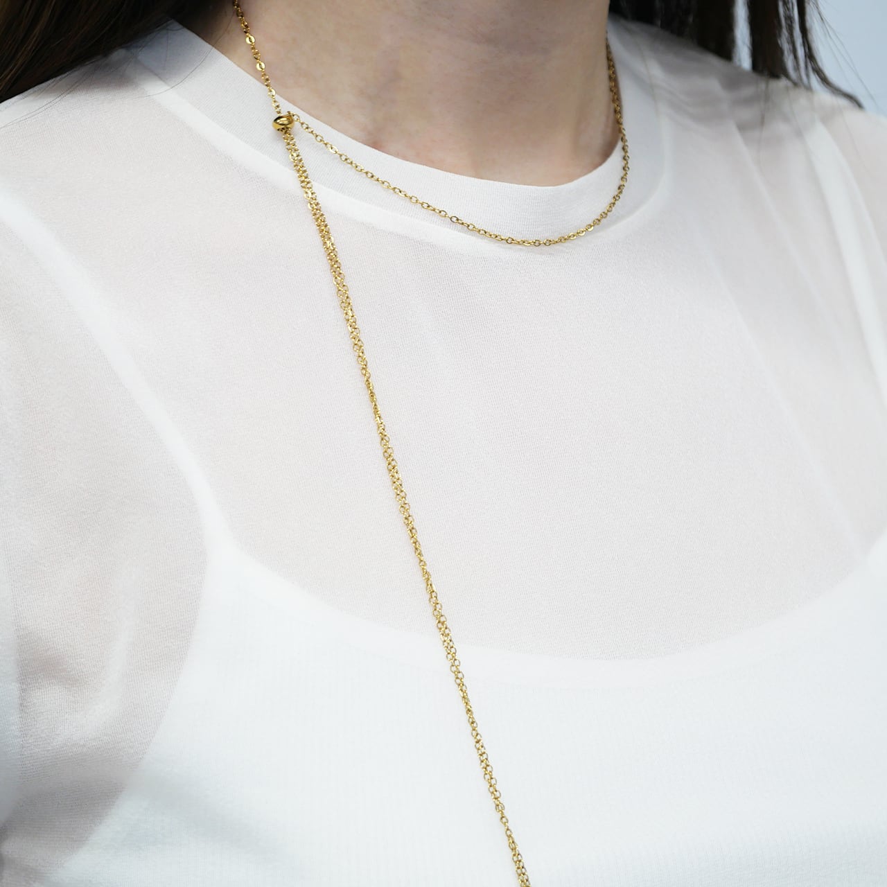 スライドボールで長さを自由に調整できる、サージカルステンレス製のロングネックレス。スタイルに合わせて、チョーカー風にも、ロングネックレスとしてもお楽しみいただけます。