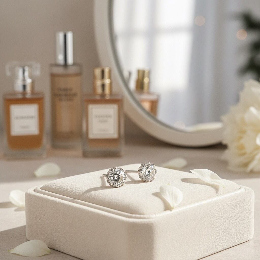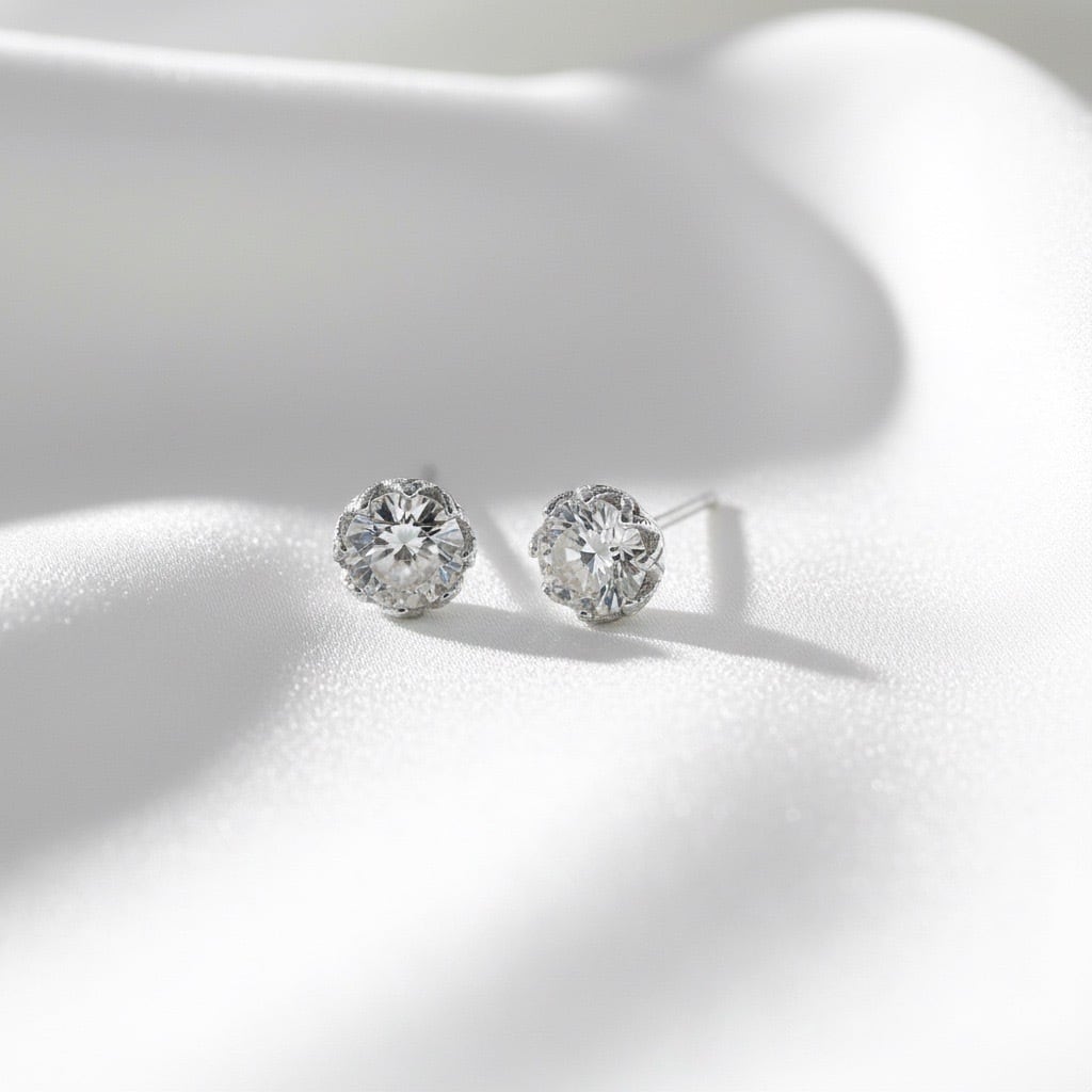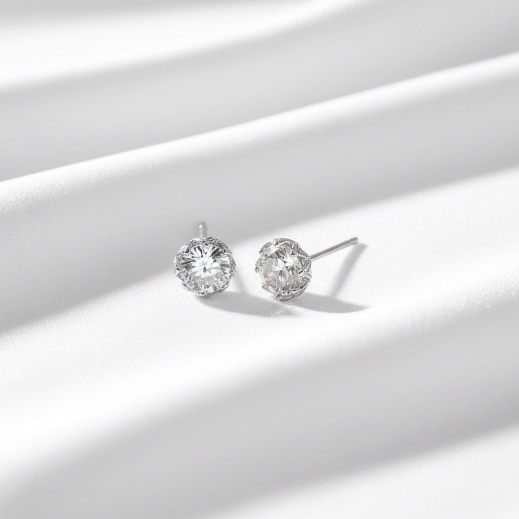 高品質のキュービックジルコニアを贅沢にあしらった、シルバー925製スタッドピアス。繊細な輝きが耳元を上品に彩り、日常にも特別なシーンにも馴染むデザインです。クラウンのような立体的な石座が、光を美しく取り込み、横から見ても存在感のある仕上がり。