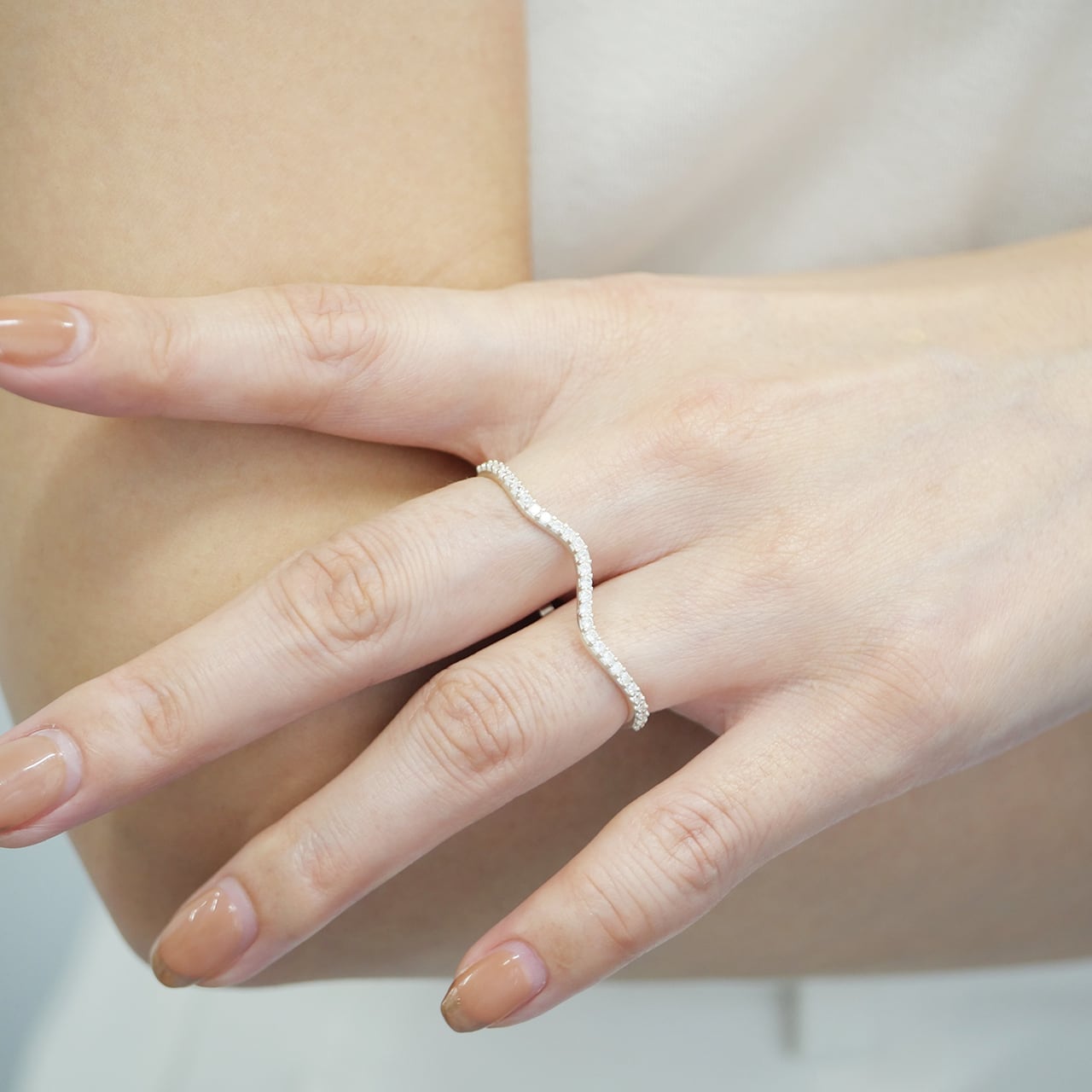 滑らかなウェーブが指のラインを美しく見せ、どんなコーディネートにも自然に馴染みます。デイリーから特別なシーンまで、永く愛用できるタイムレスなジュエリーです。