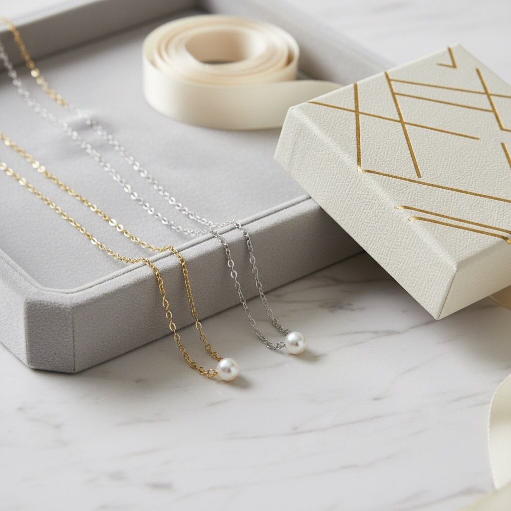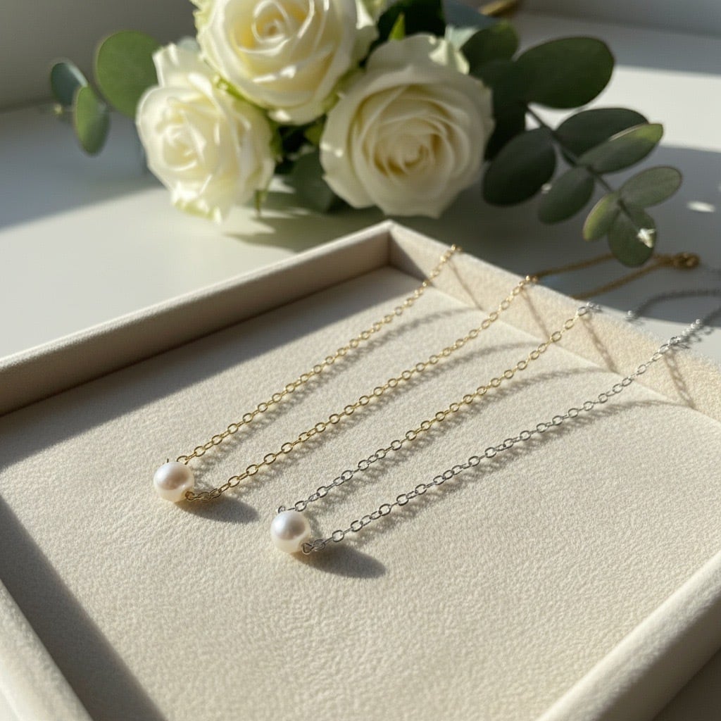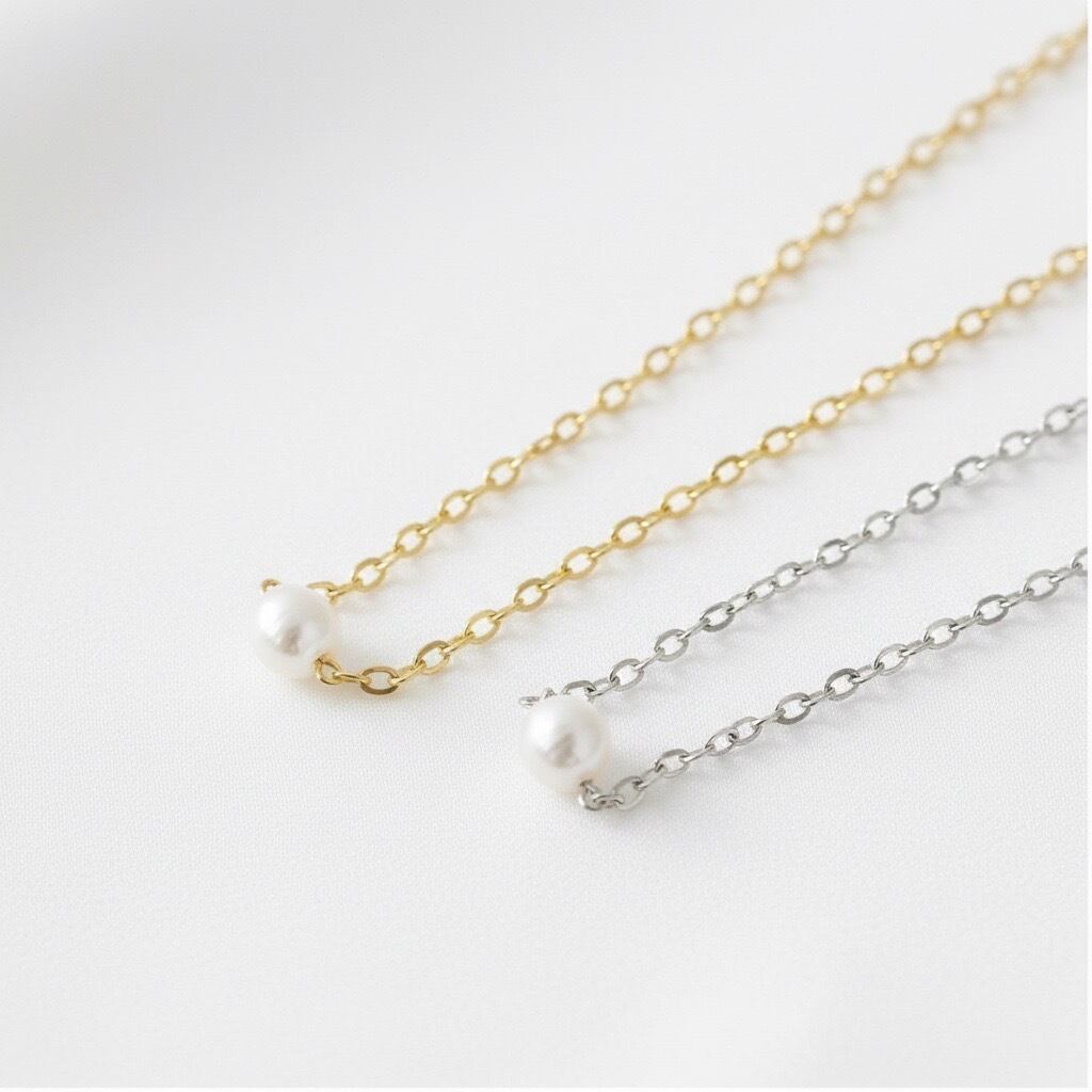 艶やかな光を放つ一粒のパールを、繊細なチェーンにあしらった上品なネックレス。余計な装飾を省いたミニマルなデザインが、デコルテを美しく引き立てます。サージカルステンレス316L素材を使用し、水や汗に強く変色しにくいため、つけっぱなしにもおすすめ。シルバーとゴールドの2色展開で、シンプルながら女性らしい華やかさを添えます。日常使いからフォーマルなシーンまで幅広く活躍し、贈り物にも最適なアイテムです。