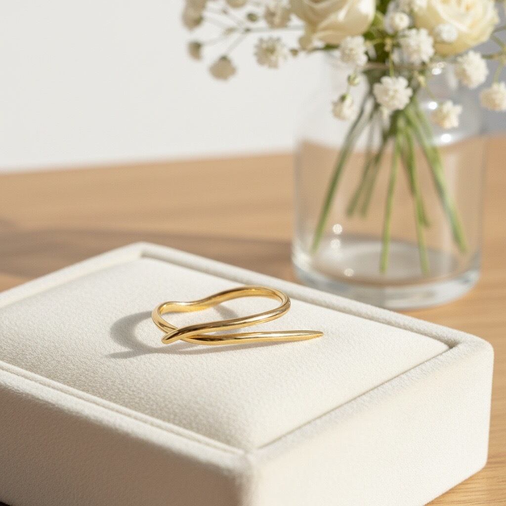 流れるようなラインが指先を美しく見せ、モードでありながら柔らかさを感じるフォルムに仕上げました。