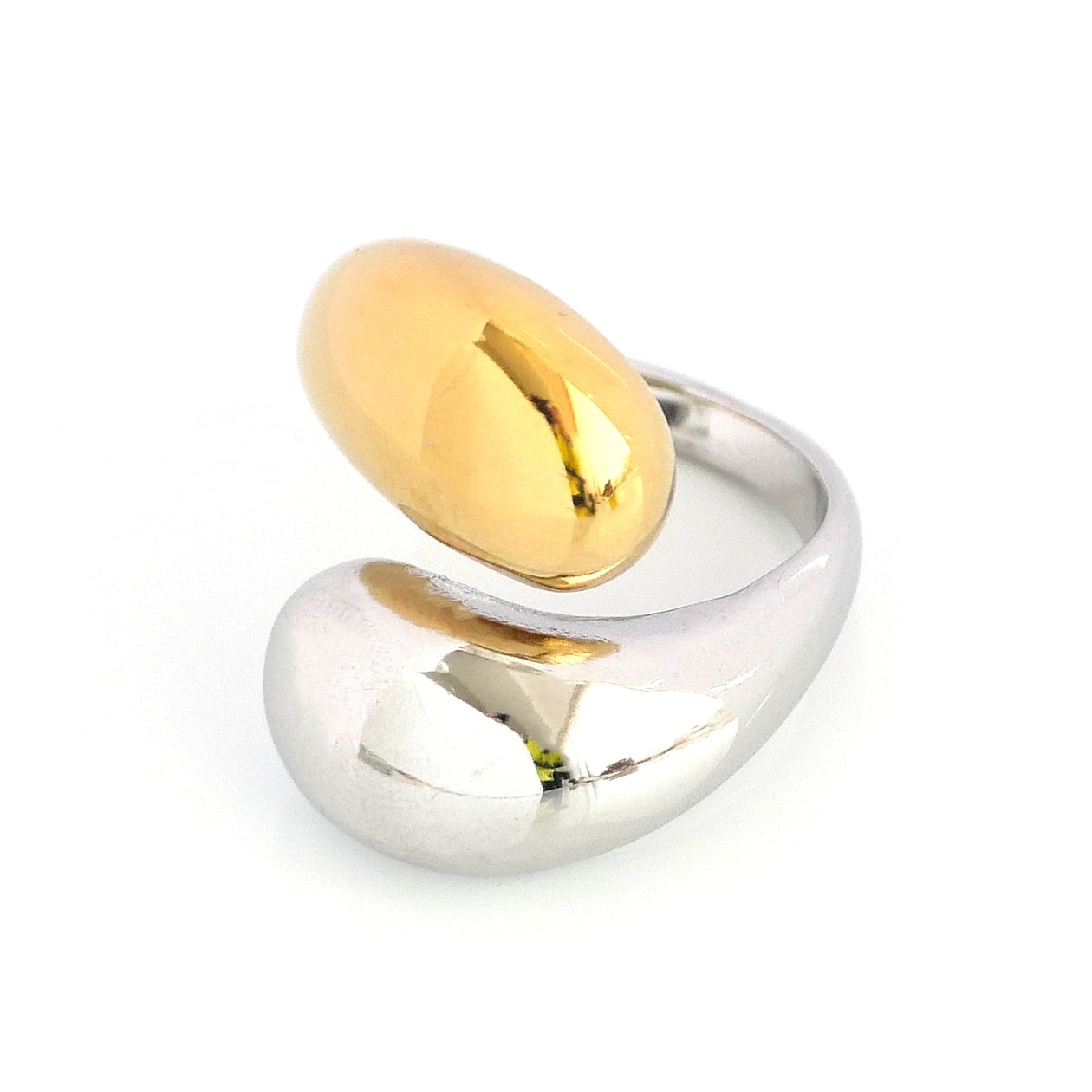 #FUSION #オープンリング #ドロップリング #サージカルステンレス316L #ゴールドシルバー #ミックスカラーリング #有機的デザイン #モードアクセ #大ぶりリング #個性派リング #重ね付けリング #金属アレルギー対応 #AtelierBEcudes #指輪