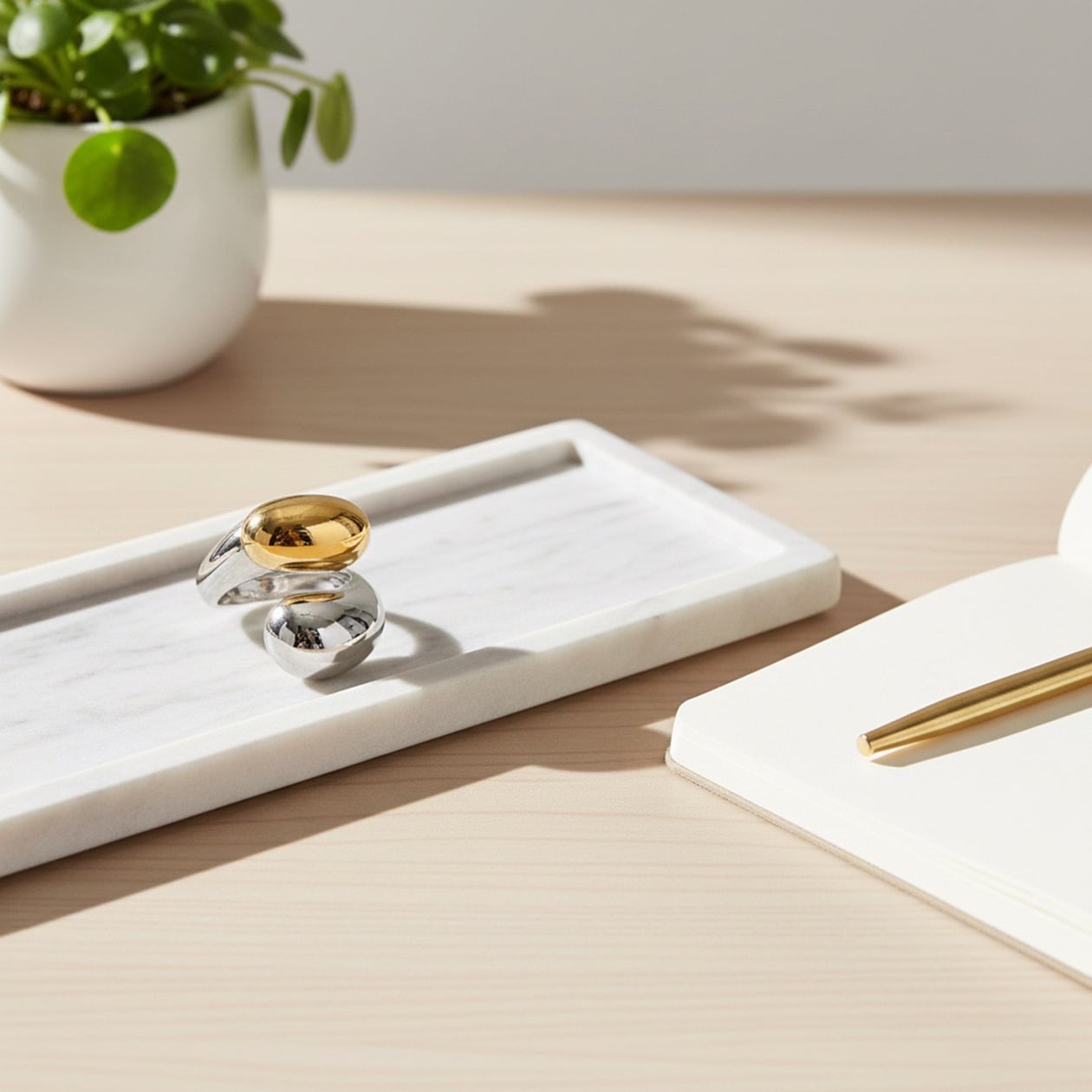 異なる輝きがひとつに溶け合う【FUSION】シリーズのドロップオープンリング。しずくのような有機的フォルムが指先に沿う立体的なデザインで、ゴールドとシルバーのコントラストがモダンな存在感を生み出します。シンプルな装いに加えるだけで手元が洗練され、個性と上品さを両立。18KゴールドPVDコーティングとステンレスシルバー仕上げにより、美しい艶が長く続きます。【FUSION】は“異なる輝きの調和”をテーマにしたシリーズで、重なり合うカラーがつながりや調和を象徴。特別な日にも日常にも映えるデザインです。
