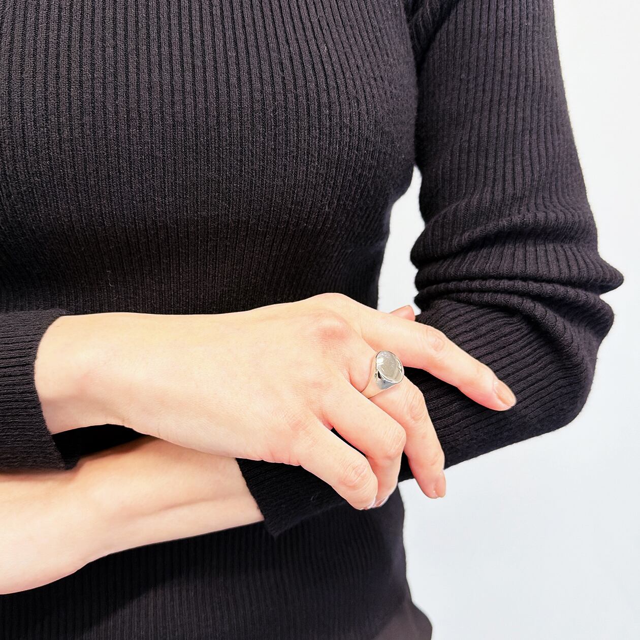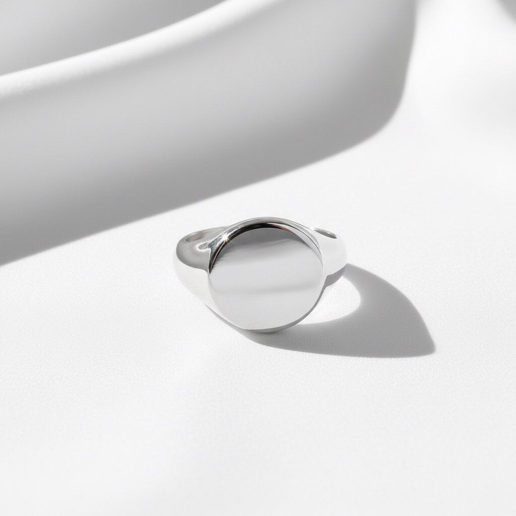 無駄のないフォルムと鏡面仕上げの美しさが際立つ、サージカルステンレス316L製のシグネットリング。