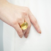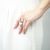 立体フォルムが印象的なボリュームリング。滑らかな曲線が指先に沿い、モードでありながら柔らかさを感じるアートピースのようなデザインです。
