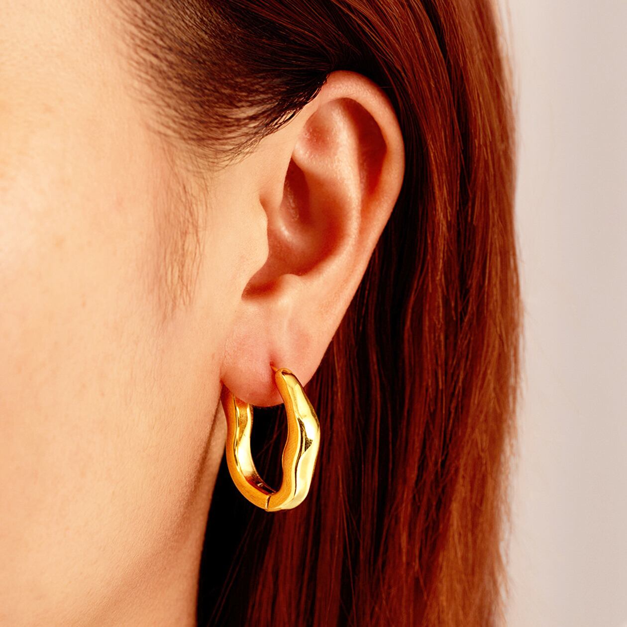 有機的なカーブが光をやわらかく反射し、上品で印象的な耳元を演出します。