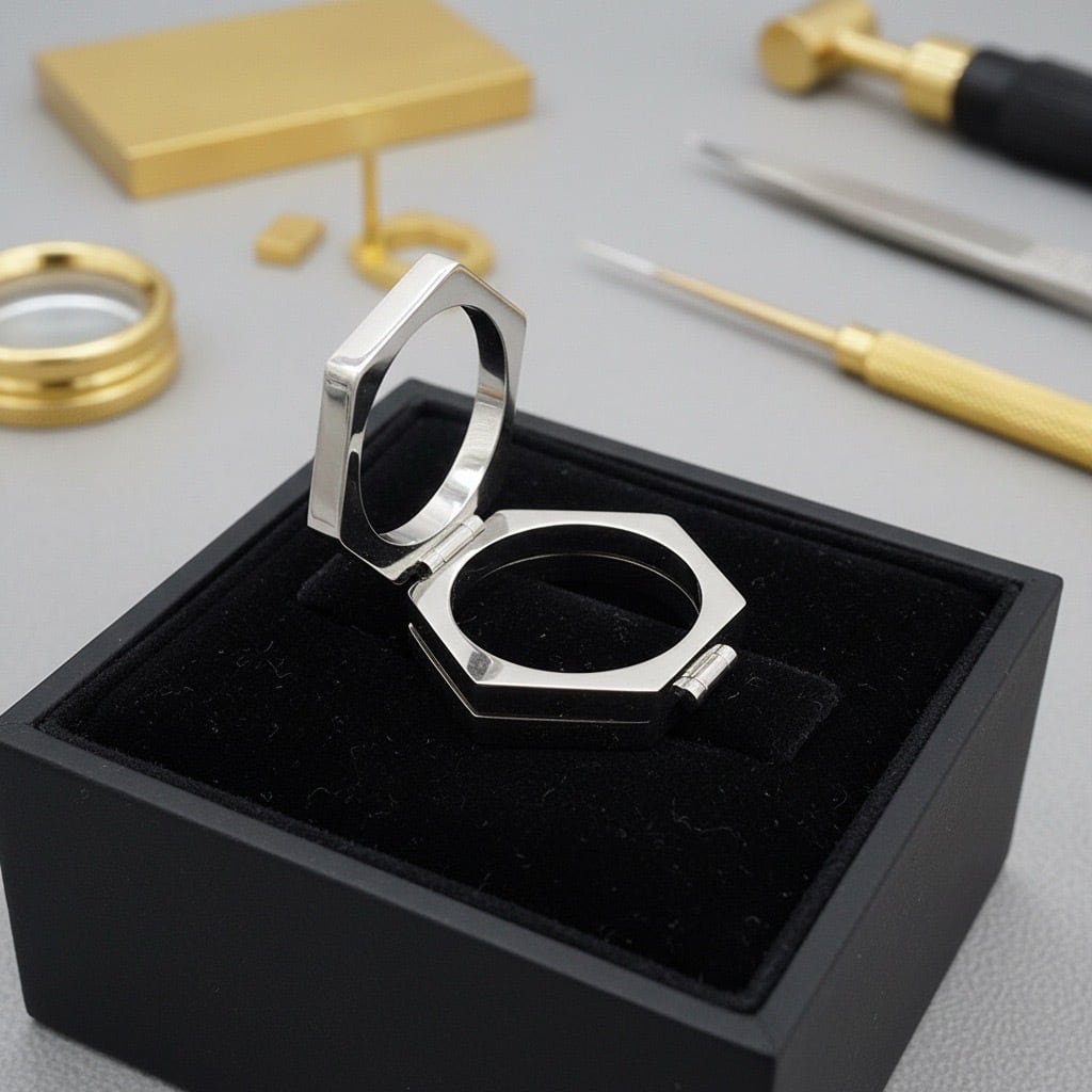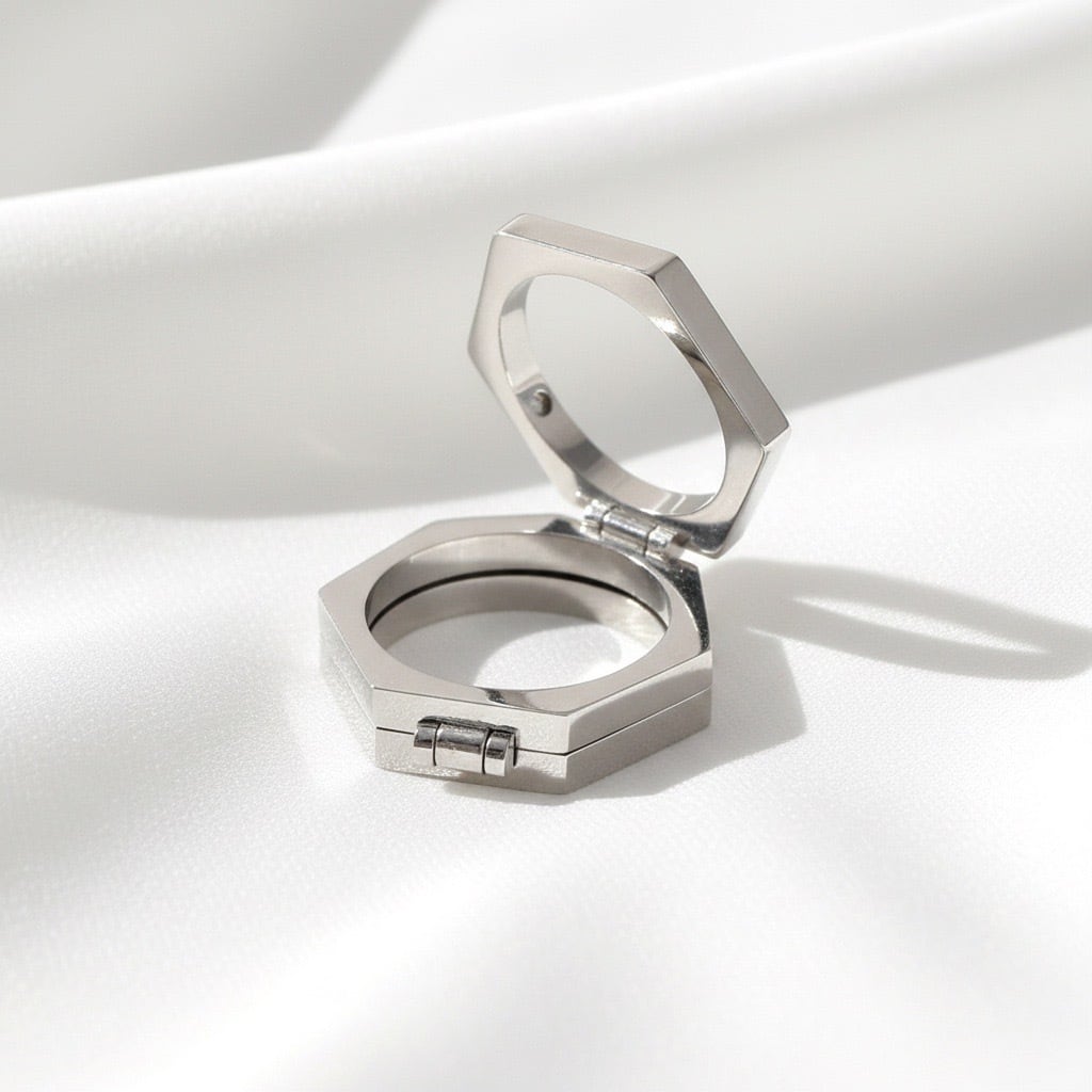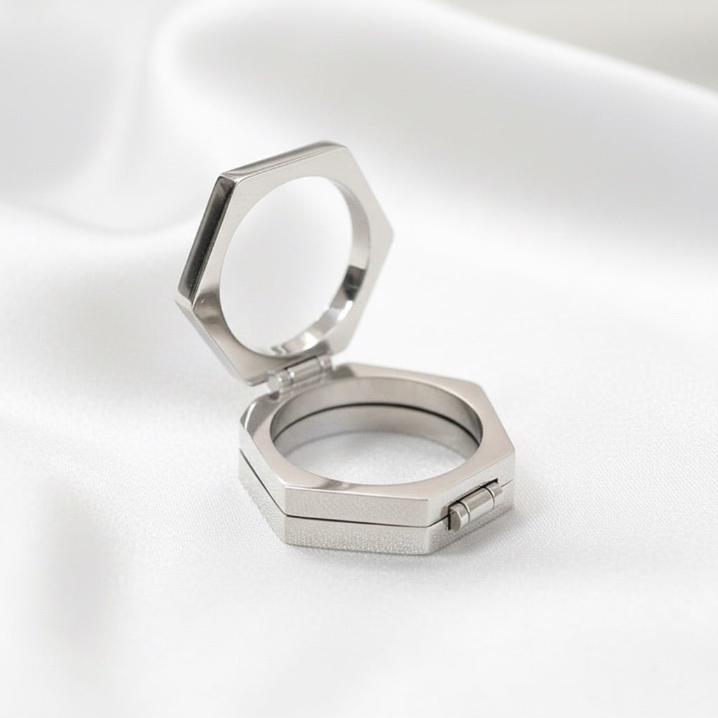 #サージカルステンレス #ステンレスリング #モジュールリング #可動式リング #六角形リング #幾何学デザイン #ユニセックス #モードアクセサリー #金属アレルギー対応 #AtelierBEcudes #ギフトにおすすめ