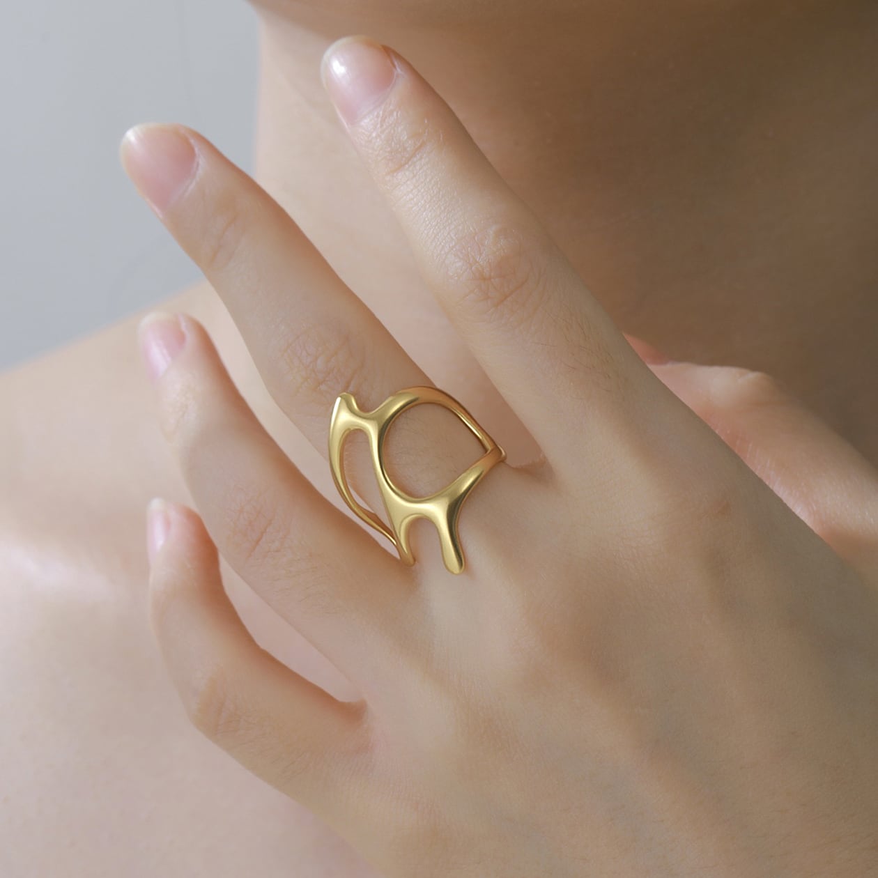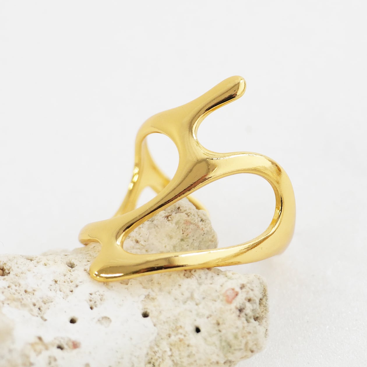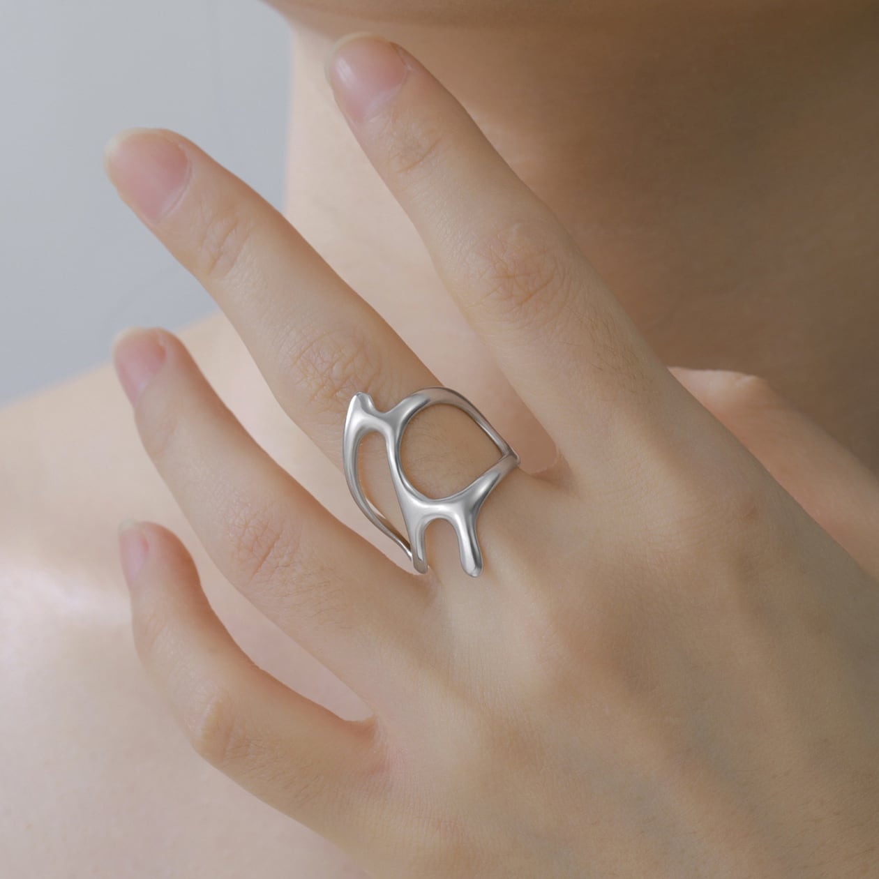 流れるような有機的フォルムが印象的なオープンリング。