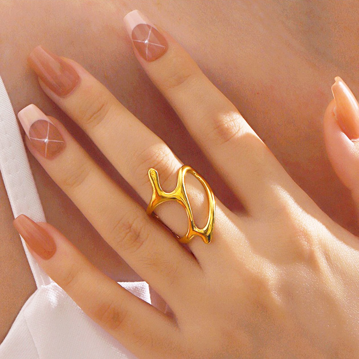 指先にアートピースのような存在感を与えながらも、抜け感のあるデザインで軽やかに仕上げました。