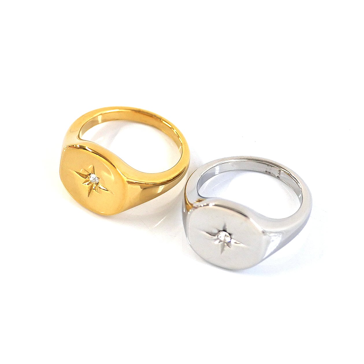 #サージカルステンレス #ステンレスリング #シグネットリング #スターモチーフ #キュービックジルコニア #シルバーリング #ゴールドリング #ユニセックスアクセサリー #金属アレルギー対応 #AtelierBEcudes #ギフトにおすすめ