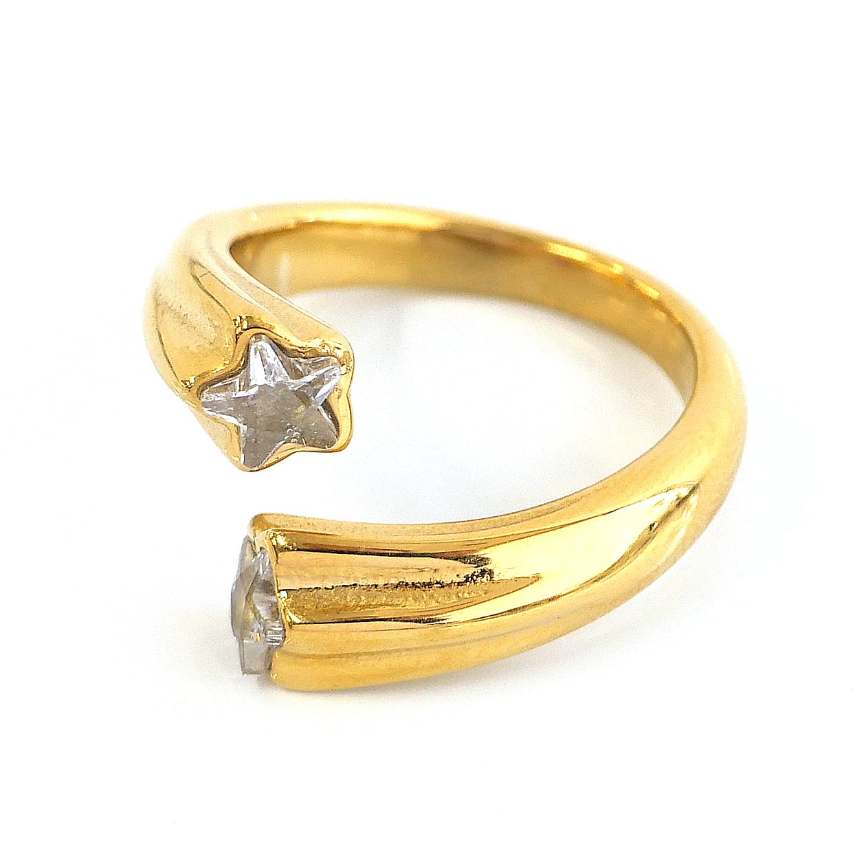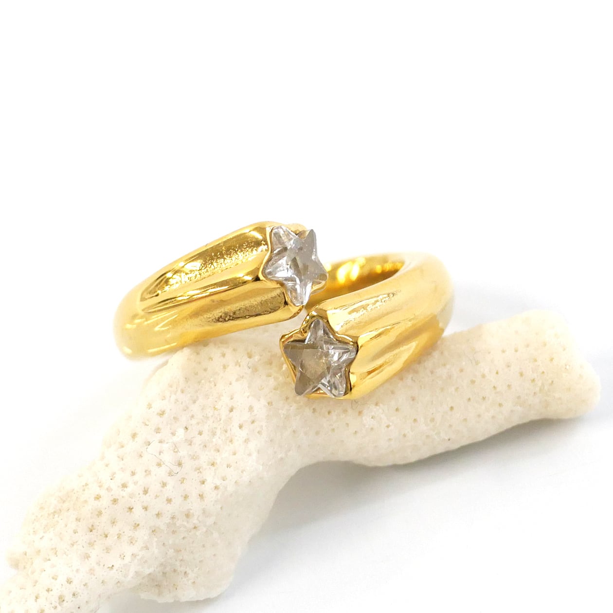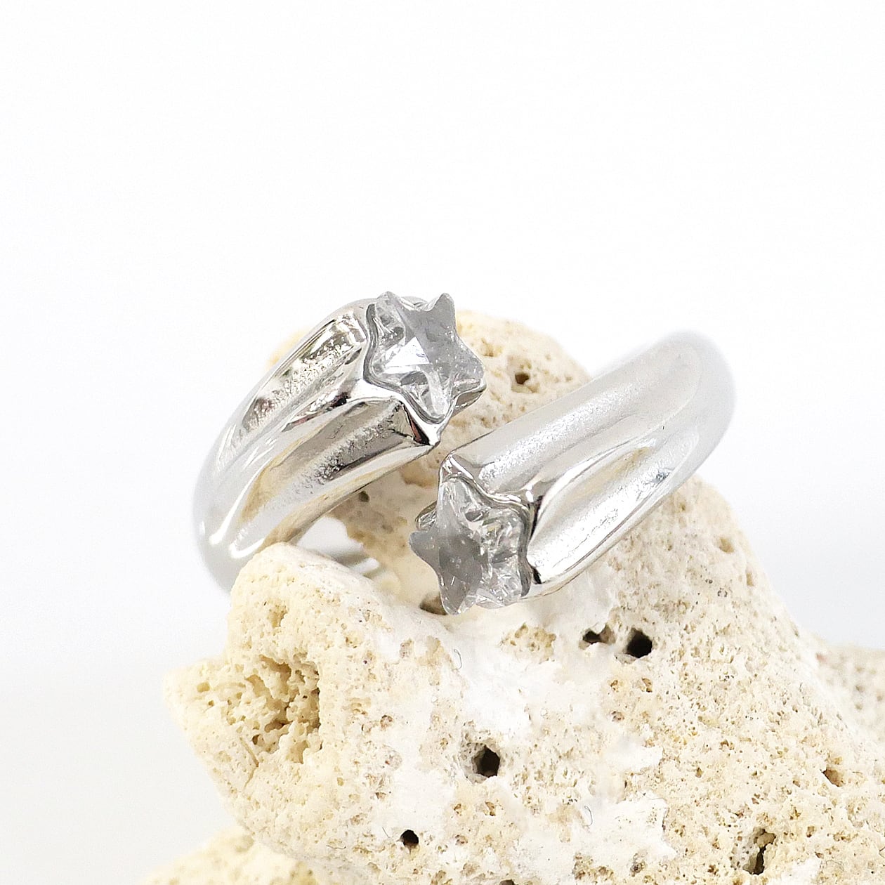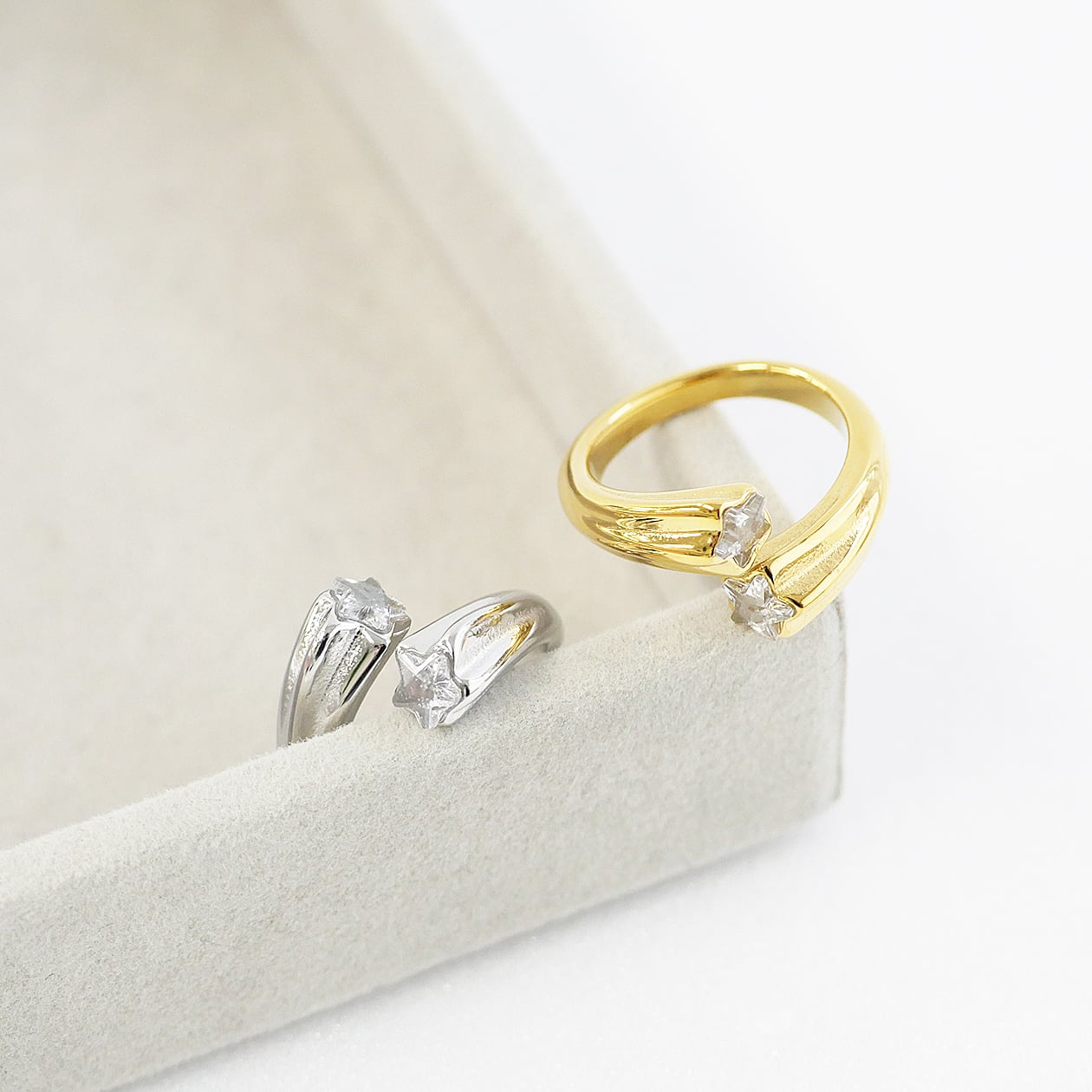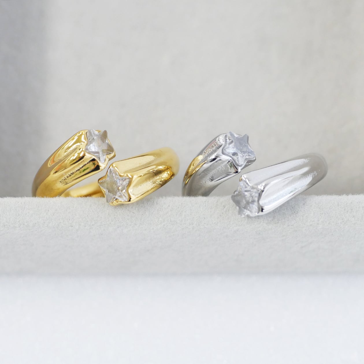 星型ストーンを2粒あしらった、上品で華やかなオープンリング。