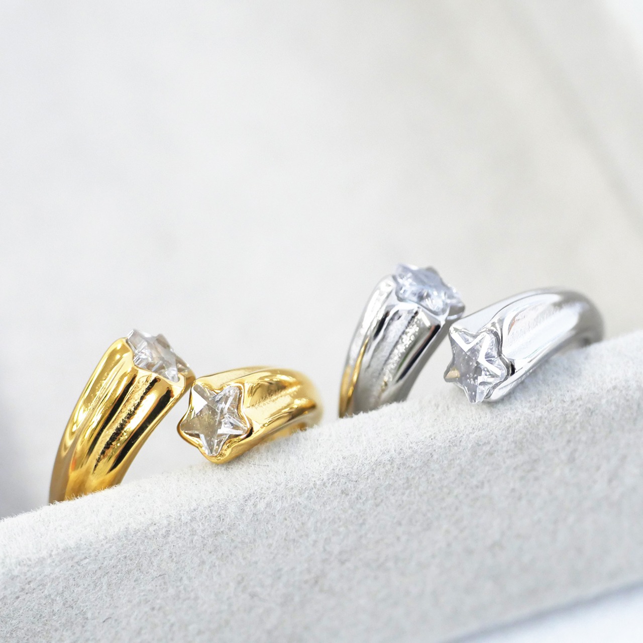 #サージカルステンレス #ステンレスリング #オープンリング #スターリング #星モチーフ #ダブルストーンリング #ゴールドリング #シルバーリング #金属アレルギー対応 #AtelierBEcudes #ギフトにおすすめ