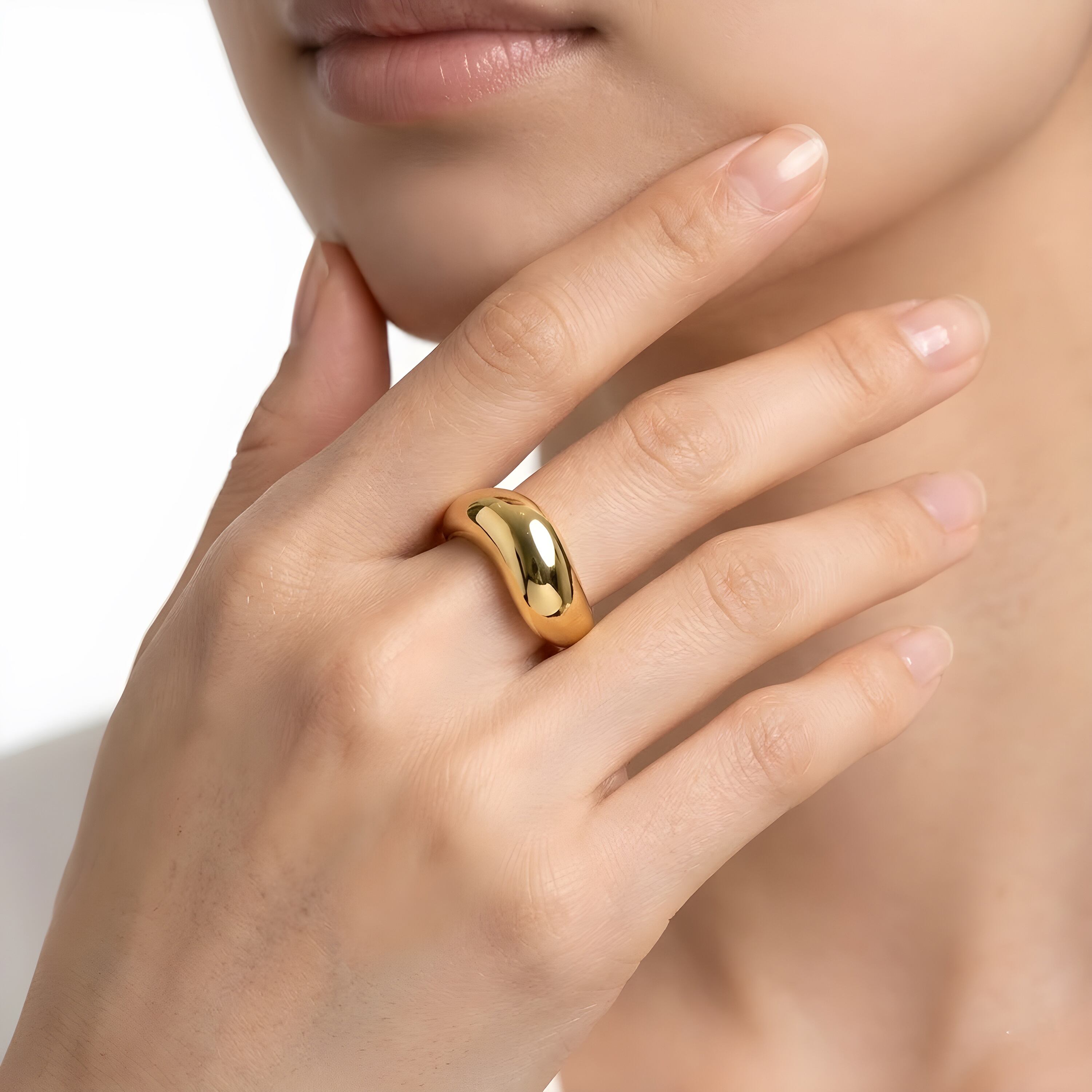 滑らかな曲線が指元に立体的な陰影をつくる、オーガニックフォルムのボリュームリング。丸みを帯びた柔らかなシルエットが光を美しく反射し、シンプルながら存在感のある手元を演出します。単品使いはもちろん、華奢リングとの重ね付けにも相性抜群。永く愛用できるデザインリングです。